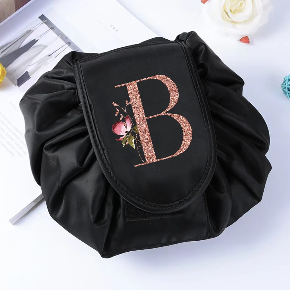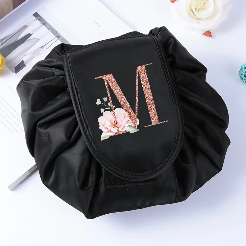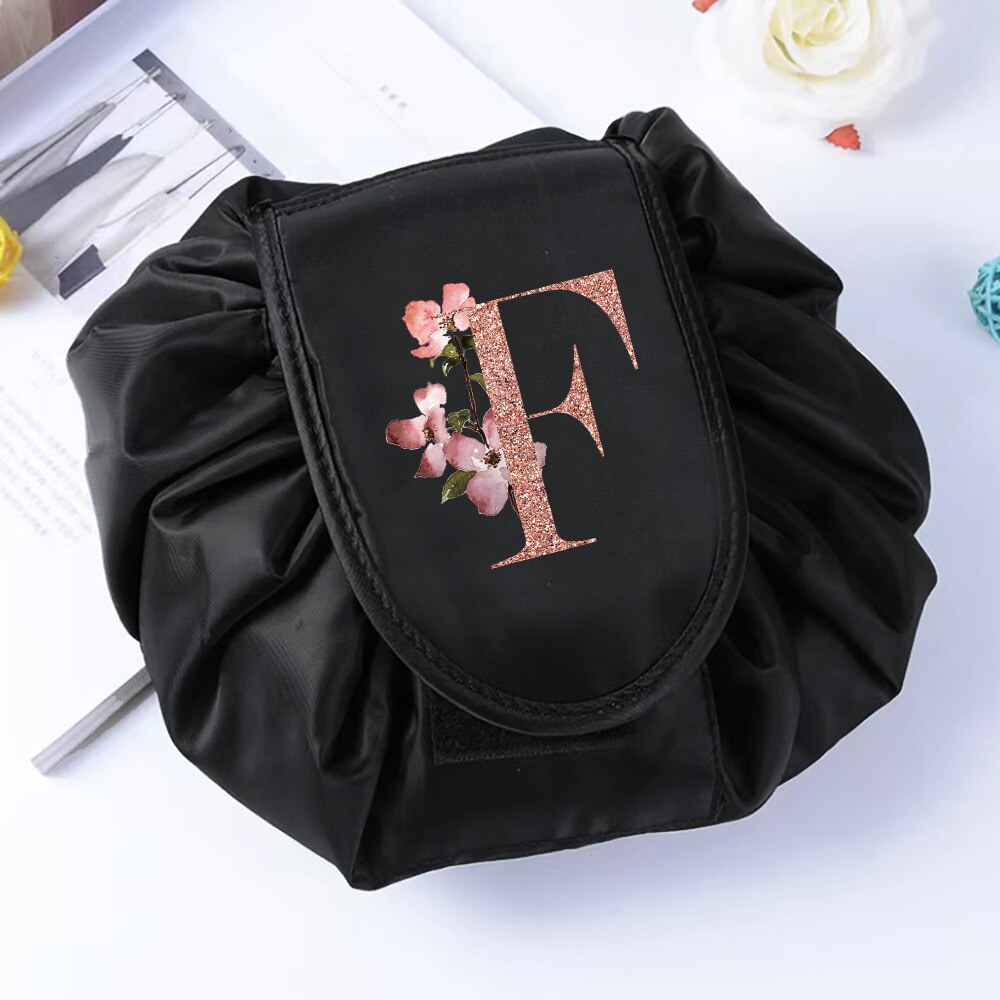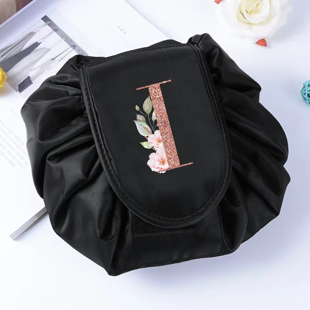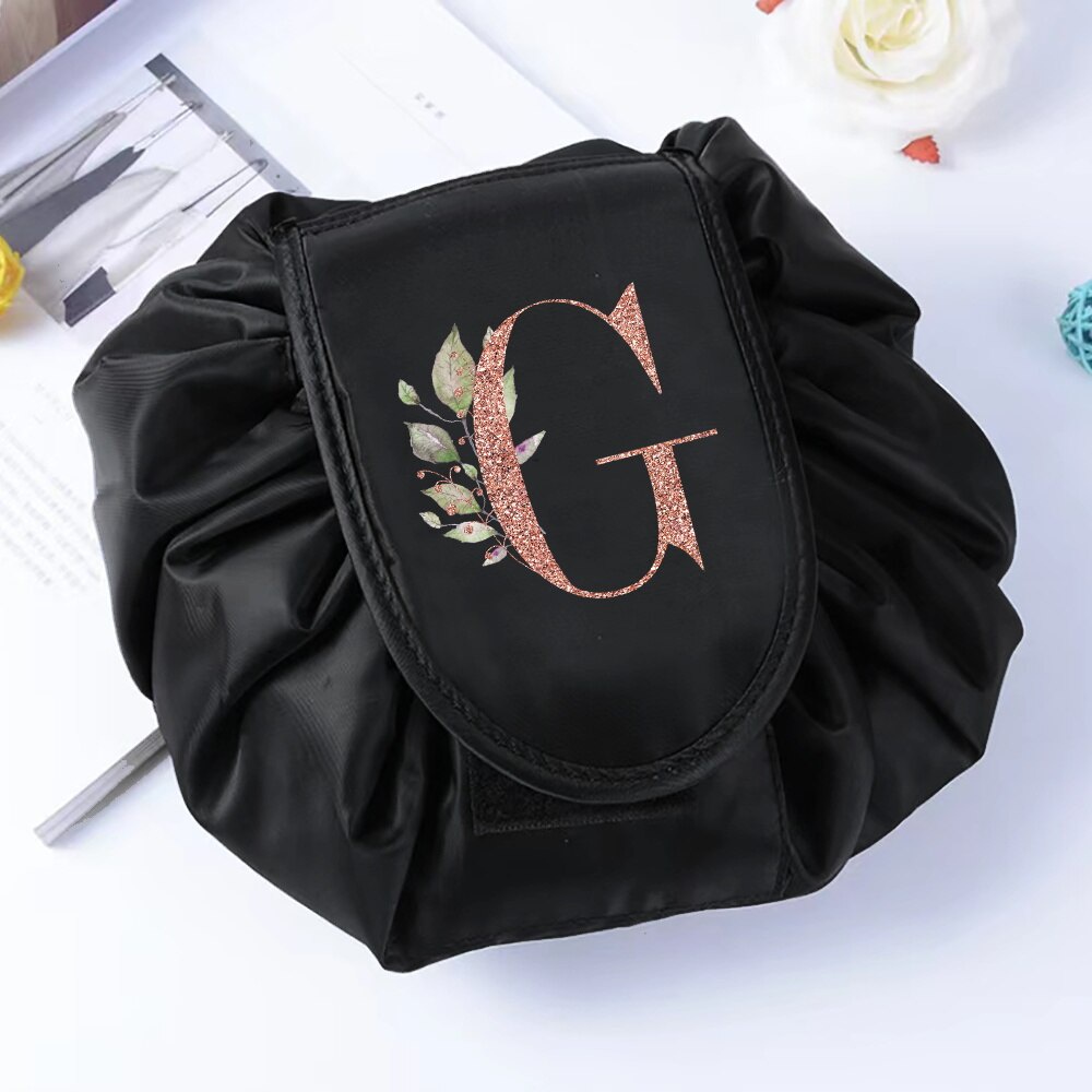 Fashion Rose Gold Letter Portable Lazy Storage Cosmetic Bag Drawstring Magic Makeup Pouch Large Capacity Travel Toiletry