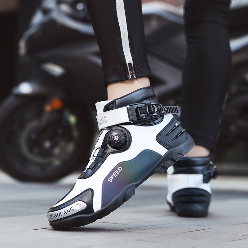 Fashion Street Motorcycle Boots Waterproof Leather Moto Boots Motocross Shoes Men Riding Racing Motorcyclist Biker Chopper Motorbike Touring Boots Outdoor Sports