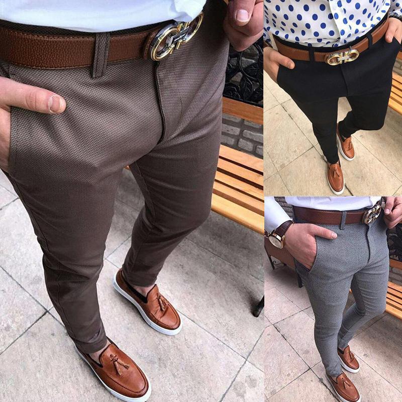 Fashion Trend Men Smart Casual Slim Fit Skinny Business Formal Party Pants Slacks Summer Long Trousers Bottoms