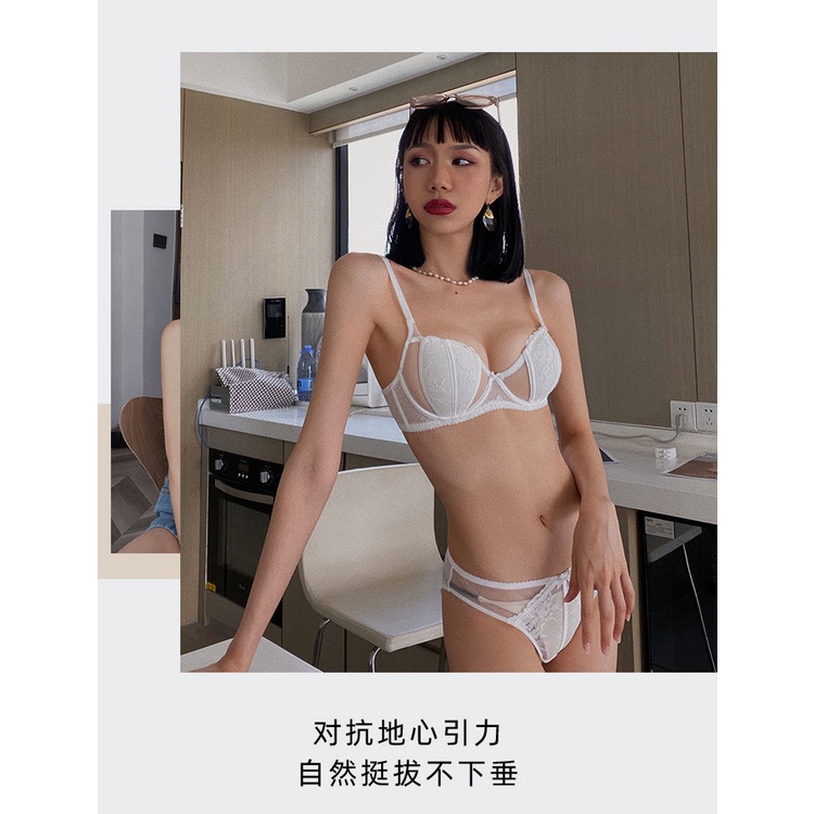Fashion Women Lingerie Transparent Bra White Sexy Half Cup Bras Lace Underwear Set Embroidery Brassiere
