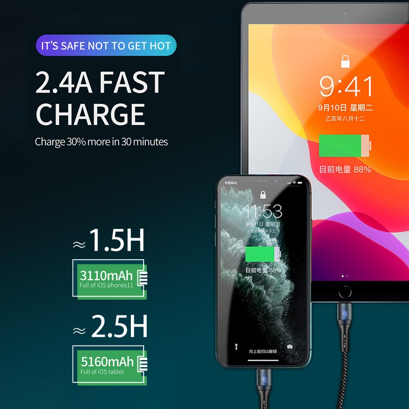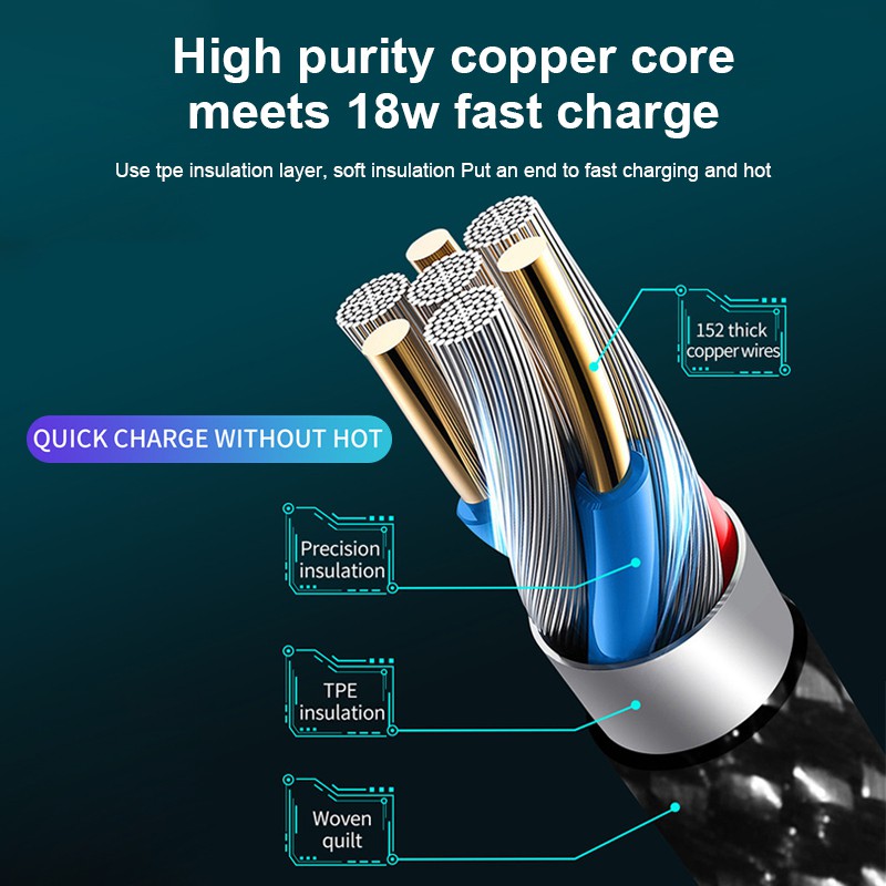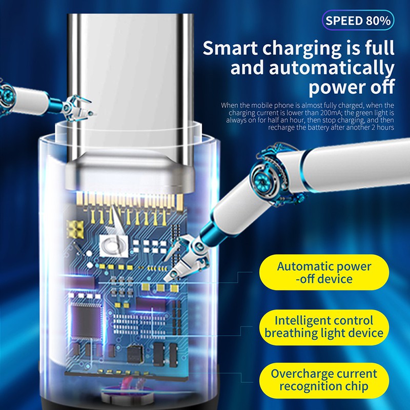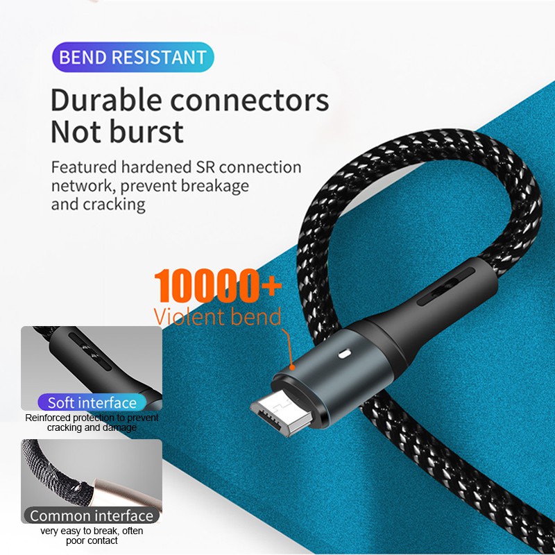 Fast Charge 6A Auto Disconnect Micro Usb Type C LED Data Cable Compatible for Samsung Huawei Quick Charger