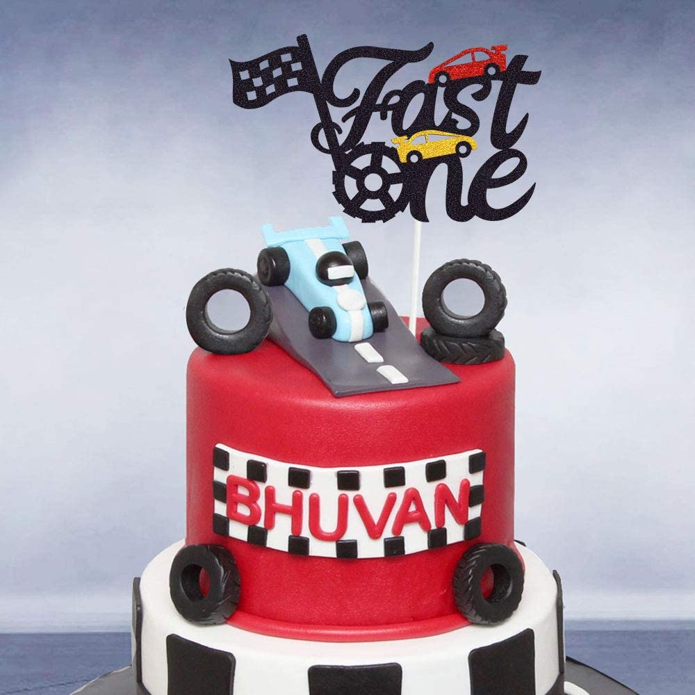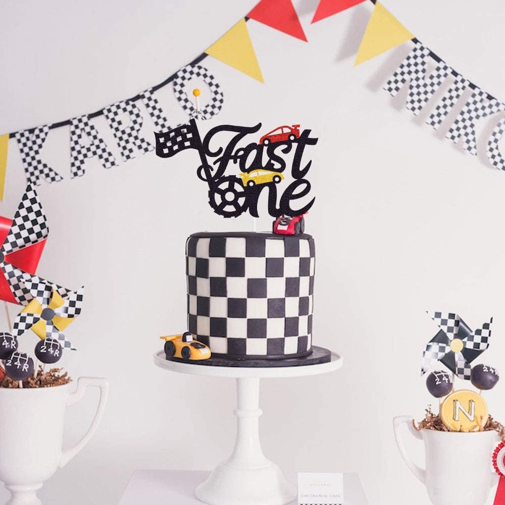 Fast One Cake Topper Race Car Theme 1st Birthday Cake Decoration Chequered Flag Themed Party Supplies Decorations