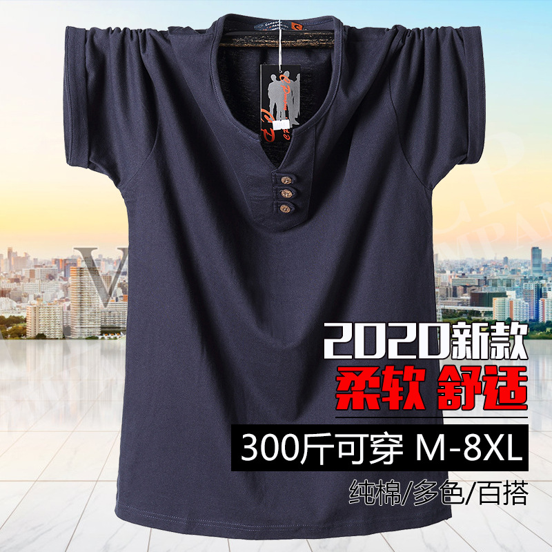 Fat Man Short Sleeve T-shirt Extra Large Fat V-neck Cotton T-shirt M-8XL