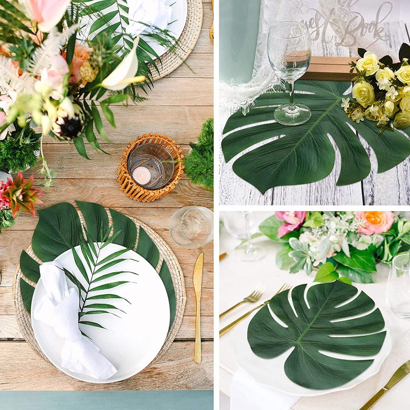 Faux Palm Leaves Artificial Turtle Leaf Fern Plant for Hawaiian Party Jungle Beach Theme Decorations, Green Wedding, Home Decor