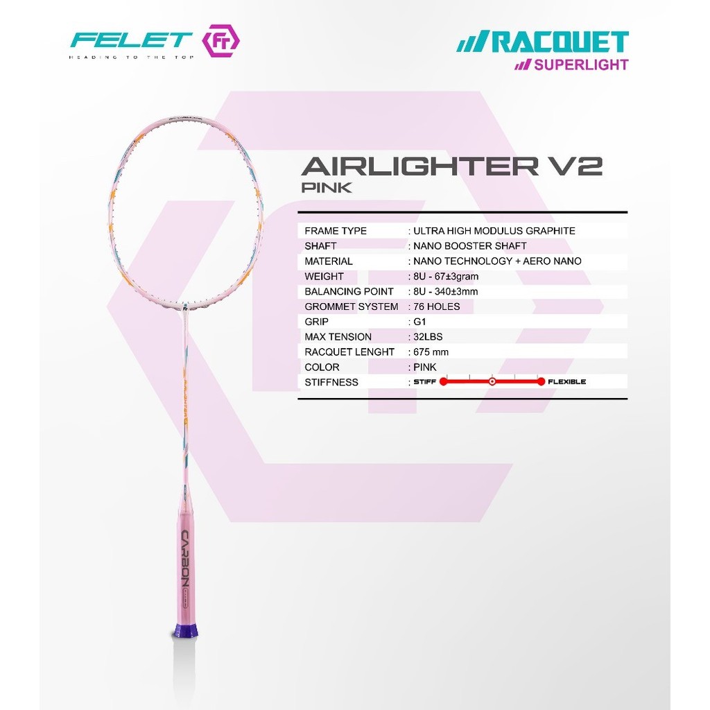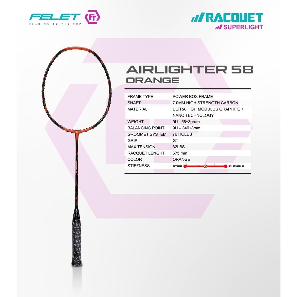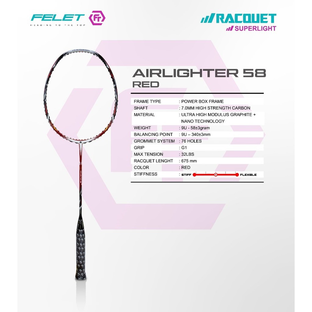 FELET AIRLIGHTER 58 9U 58 gram / AIRLIGHTER 58 VERSION 2 8U 67gram Badminton Racket 100% Original by FLEET