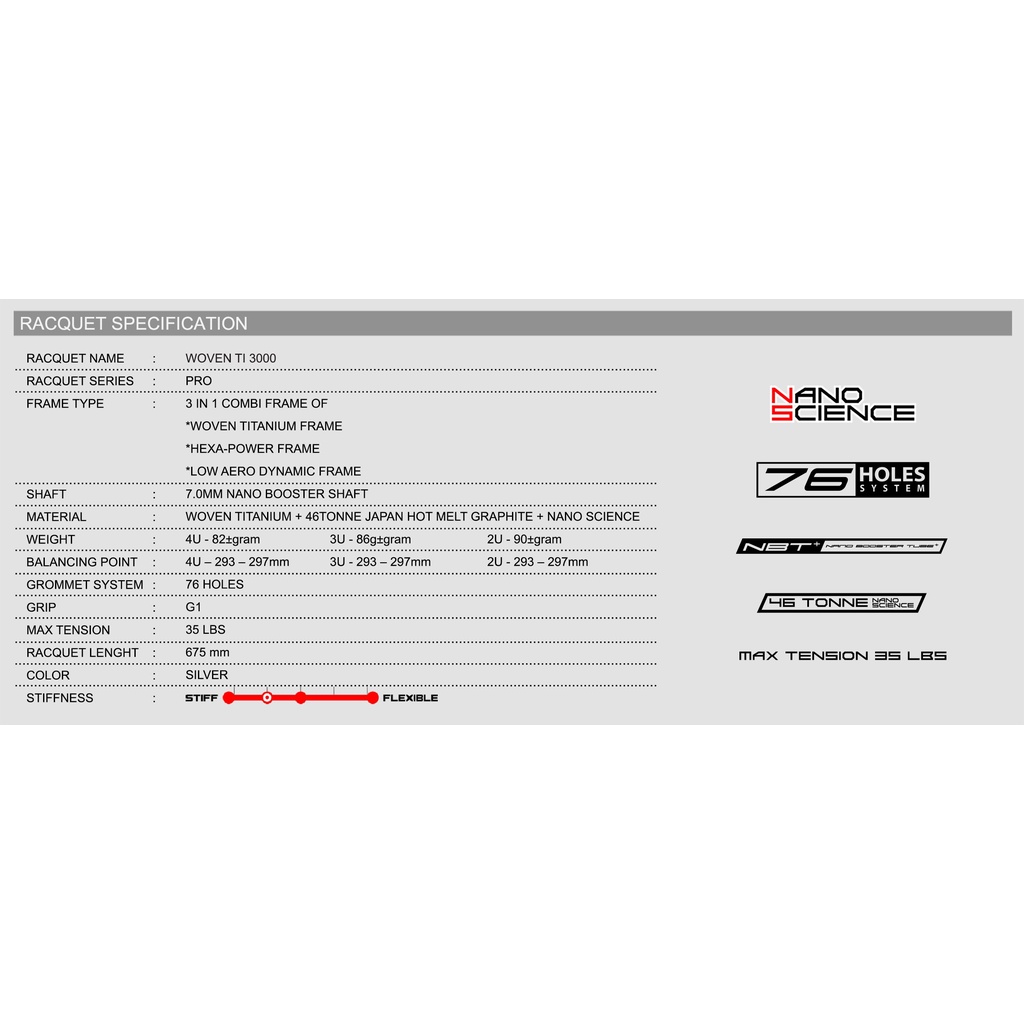 Felet Badminton Racket Woven Ti 3000 [Free String & Grip]