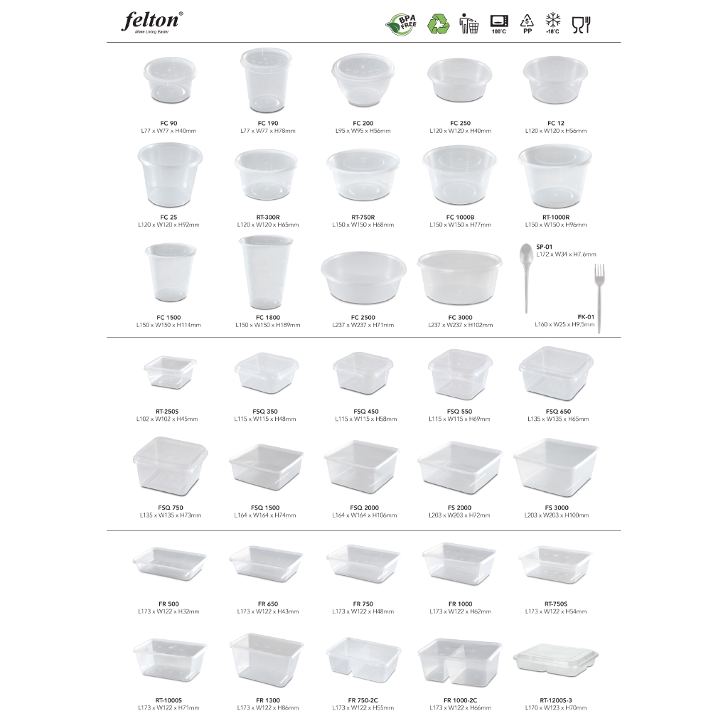 Felton Disposable Microwave Rectangular Food Container RT-1000S (1000mL x 50 pieces) ~
