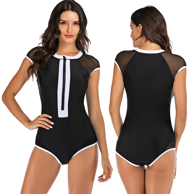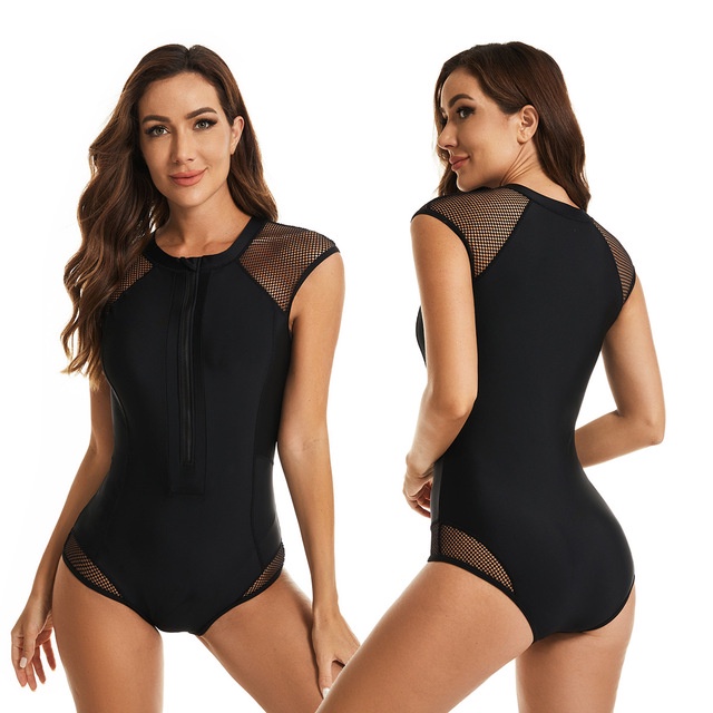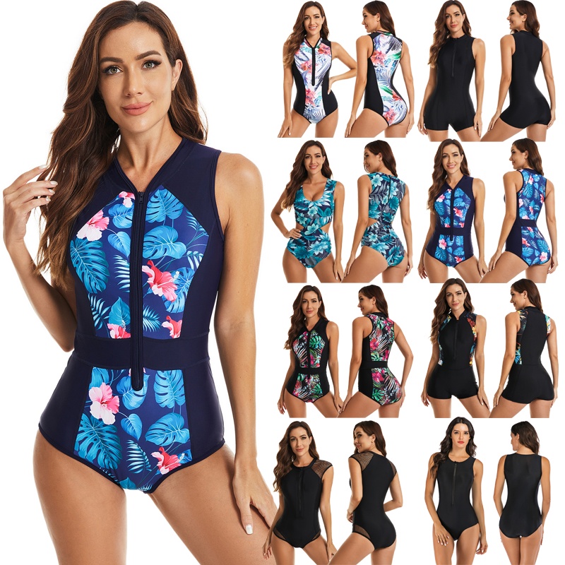 Female Sleeveless Swimsuit Women One Piece Rash Guard Surf Bodysuit Floral Zipper Swimwear Monokini Swimming Wear S-XXL