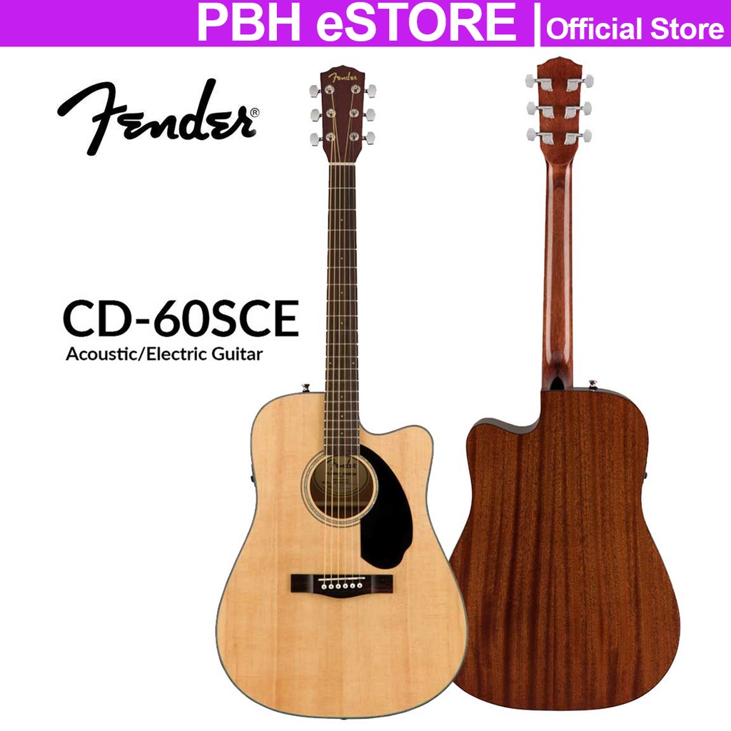 Fender CD-60SCE Dreadnought Acoustic Guitar, Walnut FB, All Mahogany, Natural