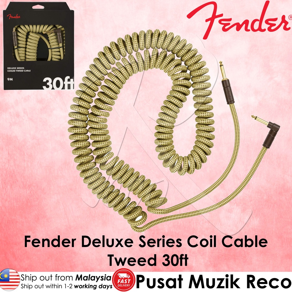 Fender Deluxe Series TWEED Coil Instrument Guitar Cable Guitar Bass Cable 30ft Coiled Cable TWEED Kabel Gitar
