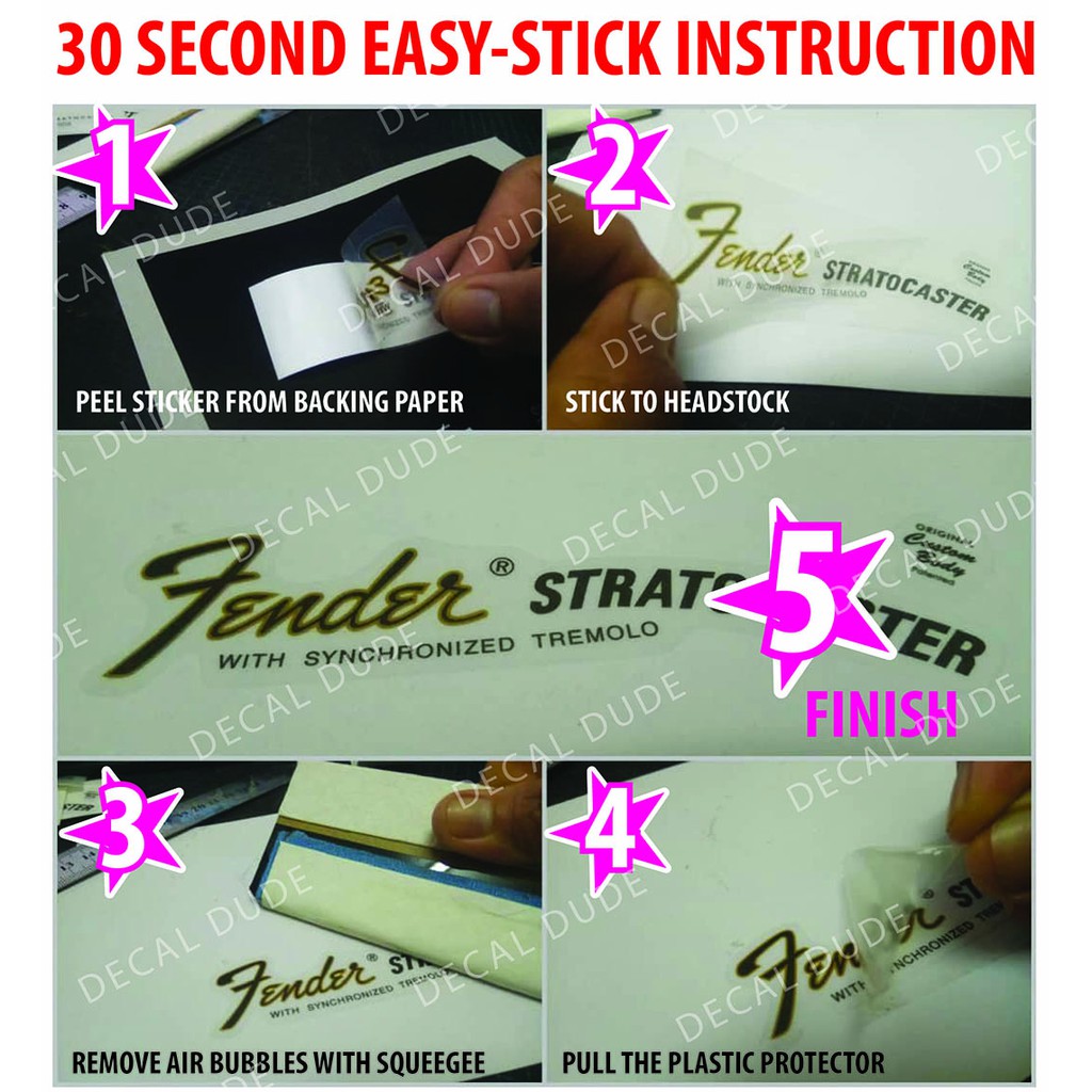 Fender Strat / Tele / Jazz Bass / Jaguar / Mustang / Jazzmaster Headstock Easy Peel N Stick Sticker