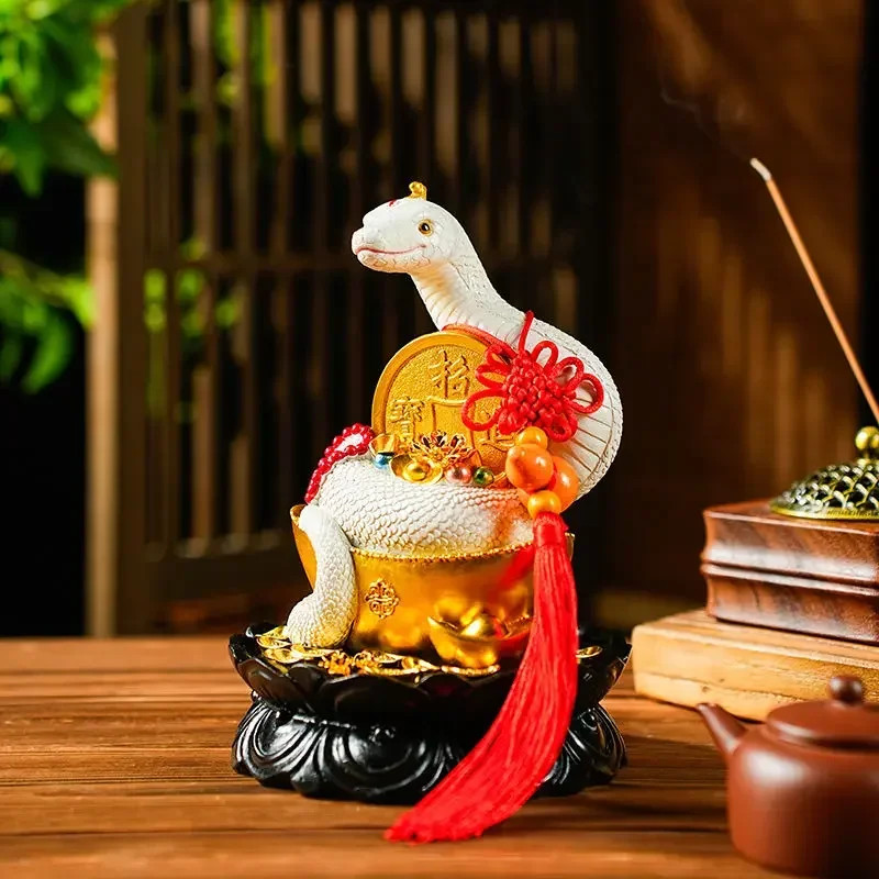 Feng Shui Attract Wealth Spirit Snake White Snake Python Buddha Hall Idol Fortune Decor