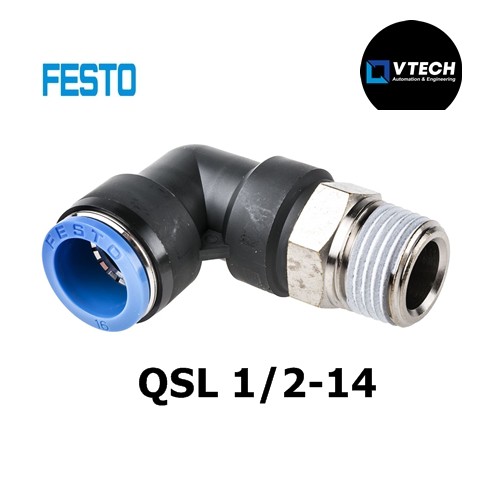 Festo Threaded-to-Tube Pneumatic Elbow Fitting R 1/2 to Push In 12 mm, QS Series, 14 bar QSL 1/2 - 14