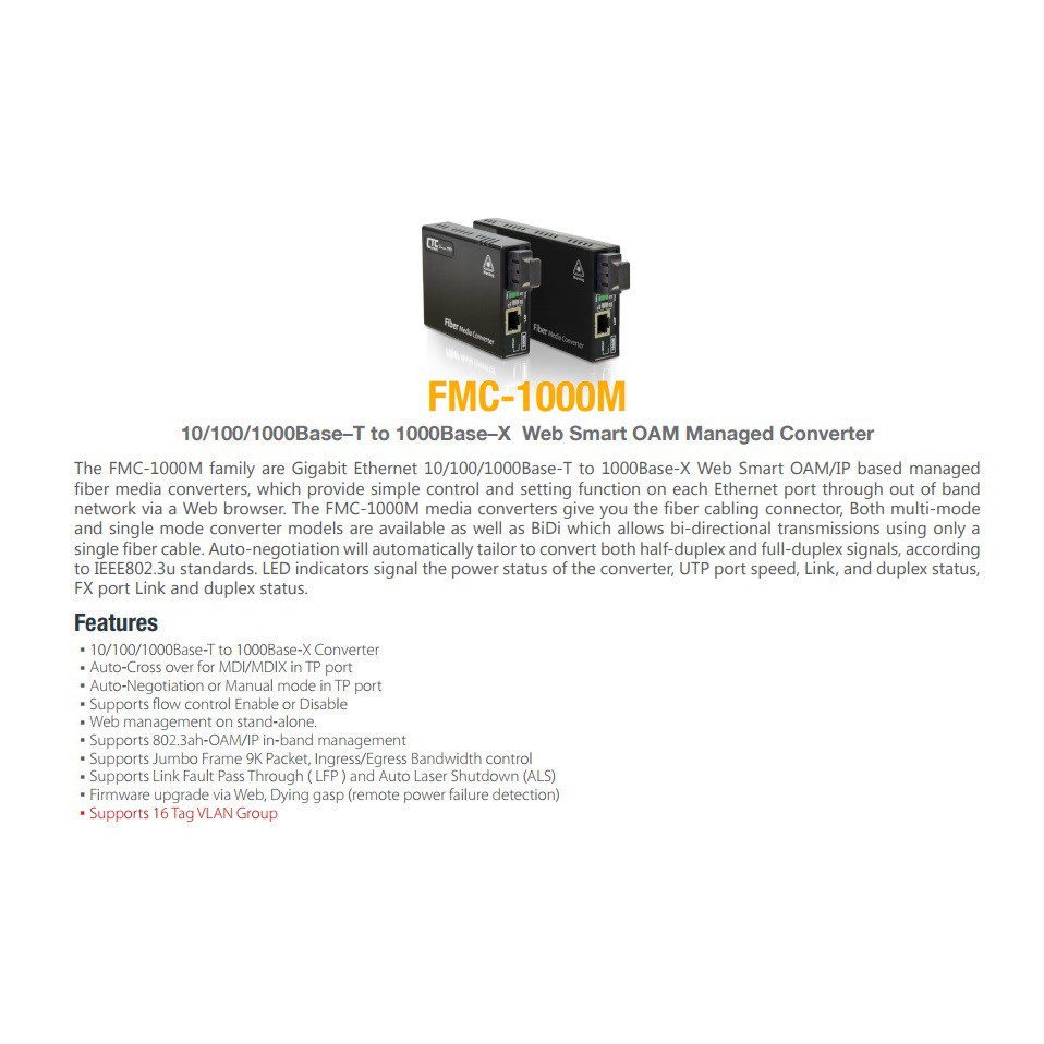 Fiber Media Converter Multimode Fiber to RJ45 Cat6 Gigabit Ethernet Dual Fiber TX RX 2KM FMC1000M