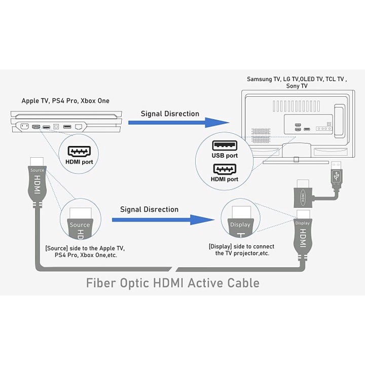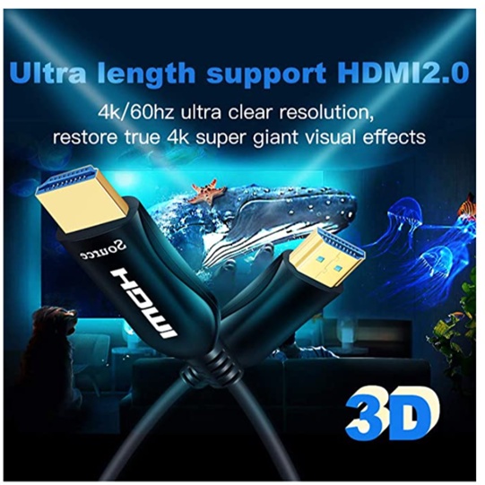 Fiber Optic Cable For HDMI Port 4K/8K Premium Light Speed 18/48Gbps Compatible With HDMI Cable V2.0 HDCP 2.2 (30m-50m)