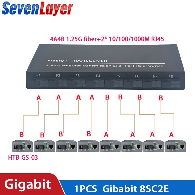 Fiber Optical switch 8 SC 2 1000M RJ45 Industrial Grade Gigabit Ethernet Switch media Converter 20km With power