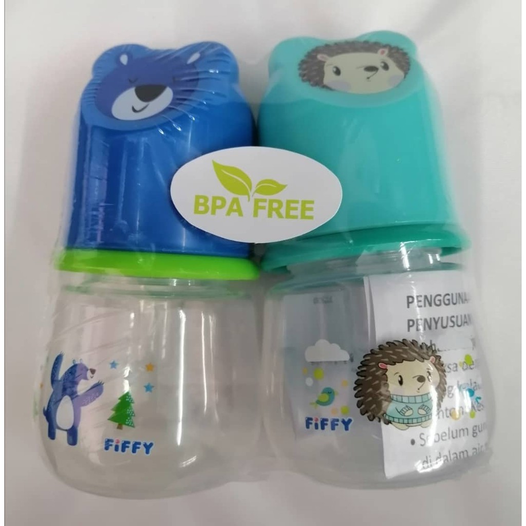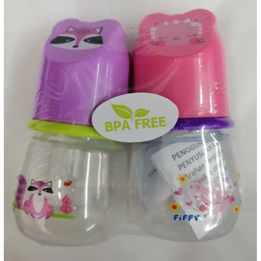 Fiffy Baby Feeding Bottle Twin Pack Botol Susu Bayi [2oz 60ml x 2] Random Colour Random Corak(new design)