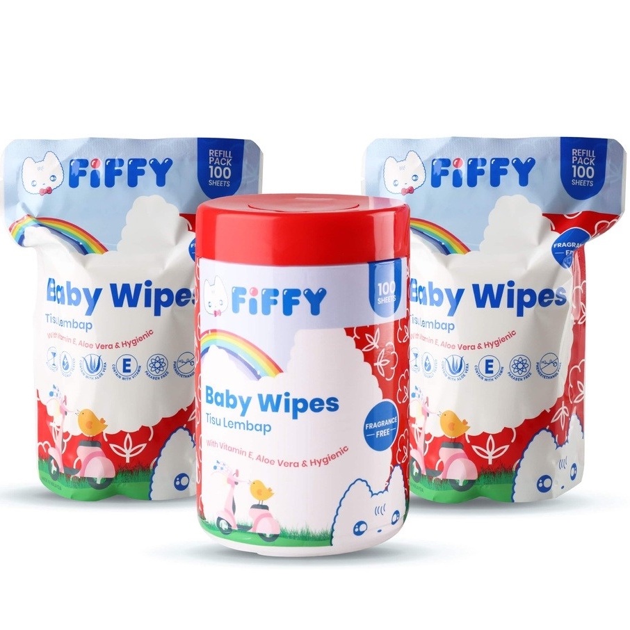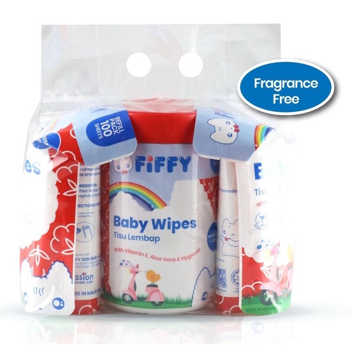 Fiffy Combo Pack Wet Tissue Wipes (1 Can + 2 Refill Pack) Tisu basah bayi