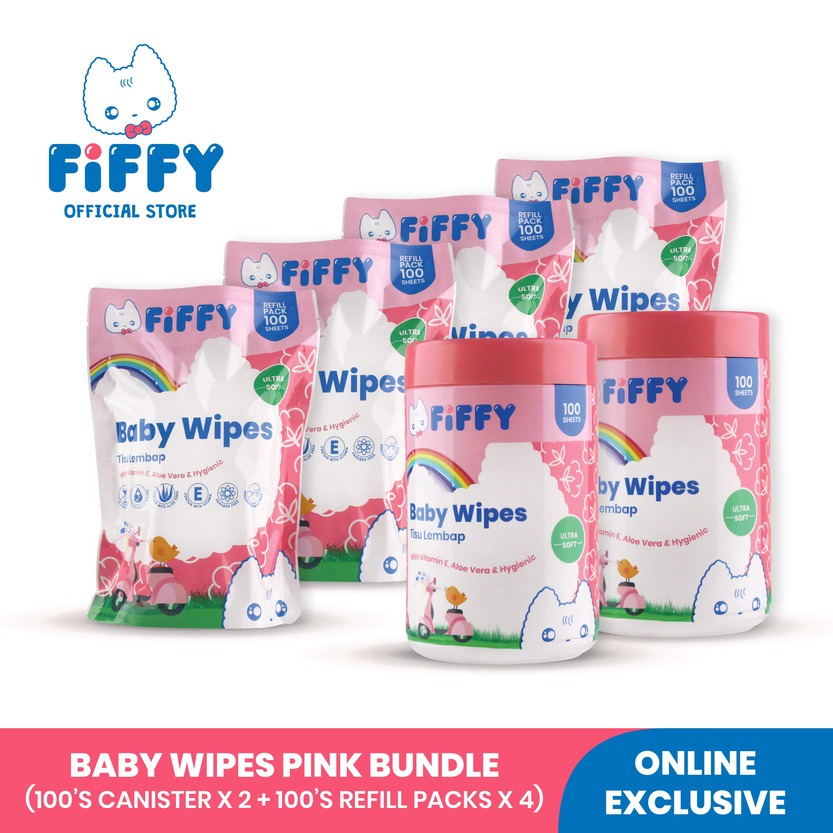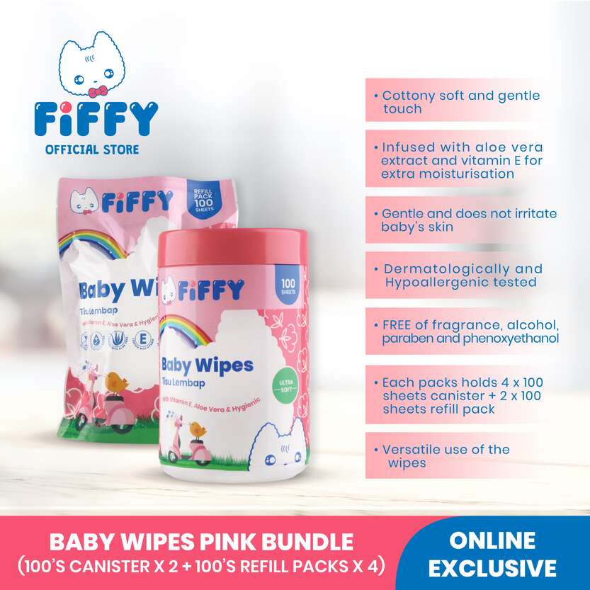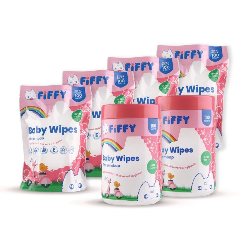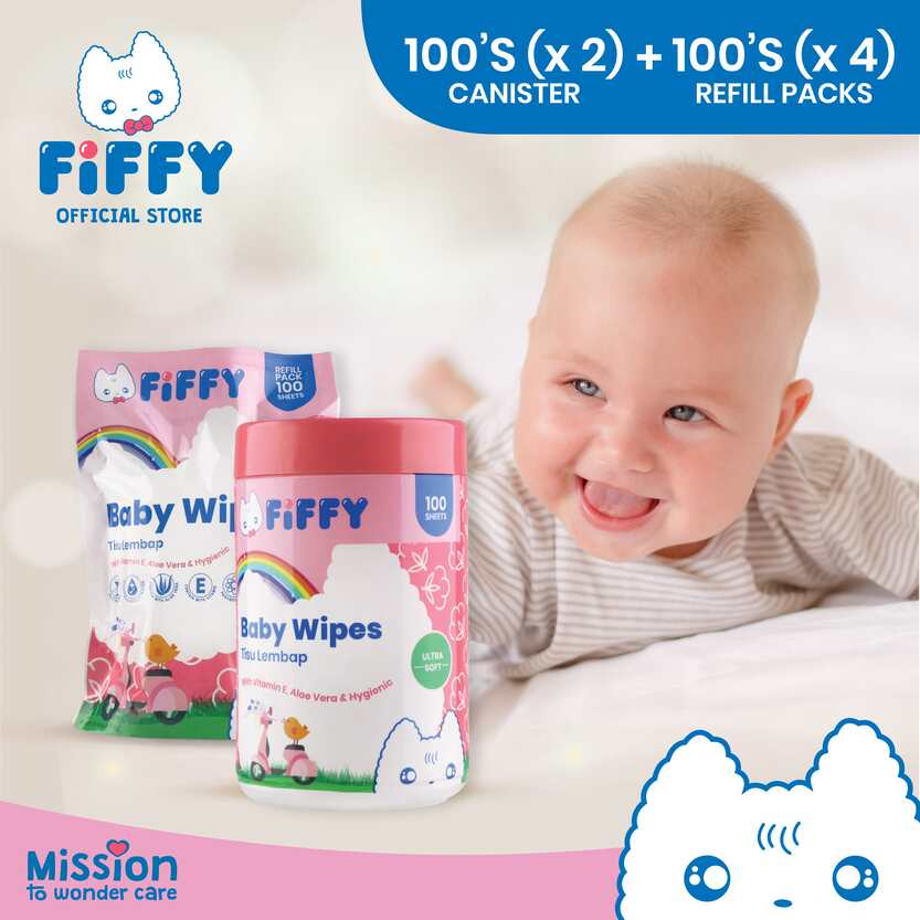 Fiffy baby tissues basah fiffy baby wipes super value 2 boxes + 4 refill total 600 sheets 600 keping