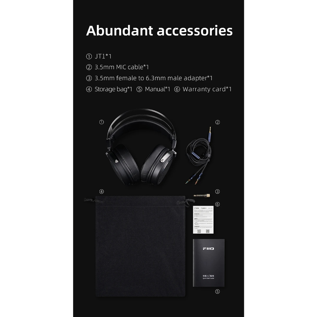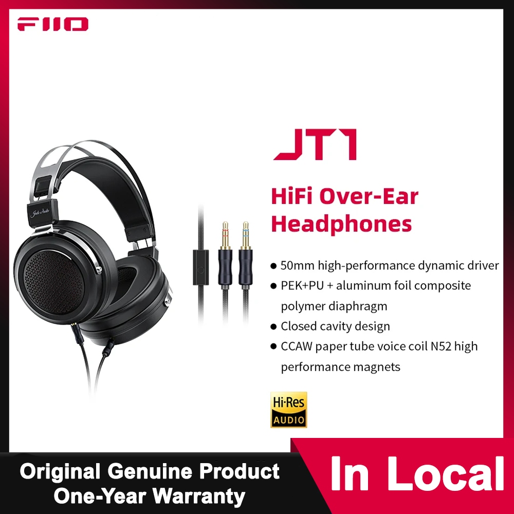 FiiO JT1 3.5mm Studio Headphones for Recording Gaming with Microphone, 50mm Diaphragms driver,HiFi Sound