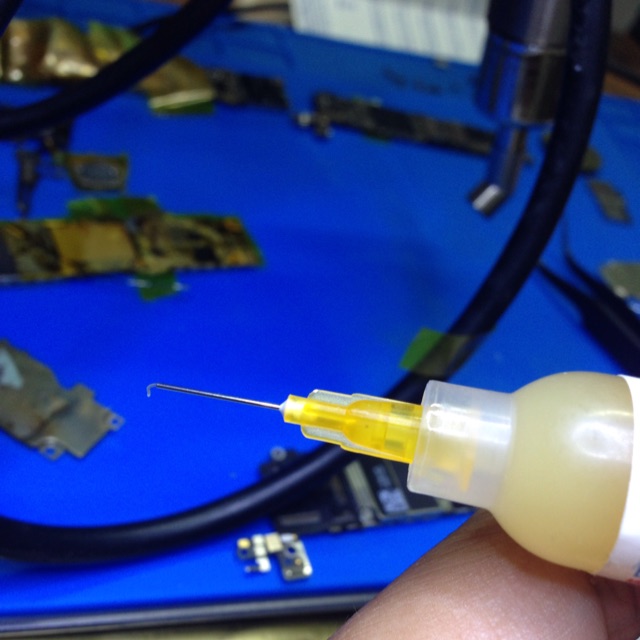 Fine pin for dispensing flux/glue
