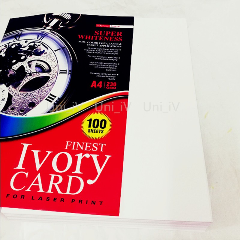Finest A4 Ivory Card 230gsm Hard Paper 100 Sheets WHITE