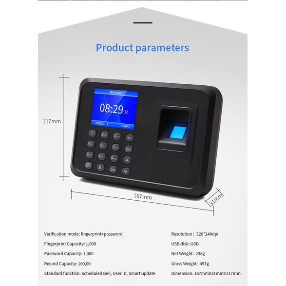 Fingerprint Time Attendance Digital Finger Print Punch Card Machine Biometric fingerprint
