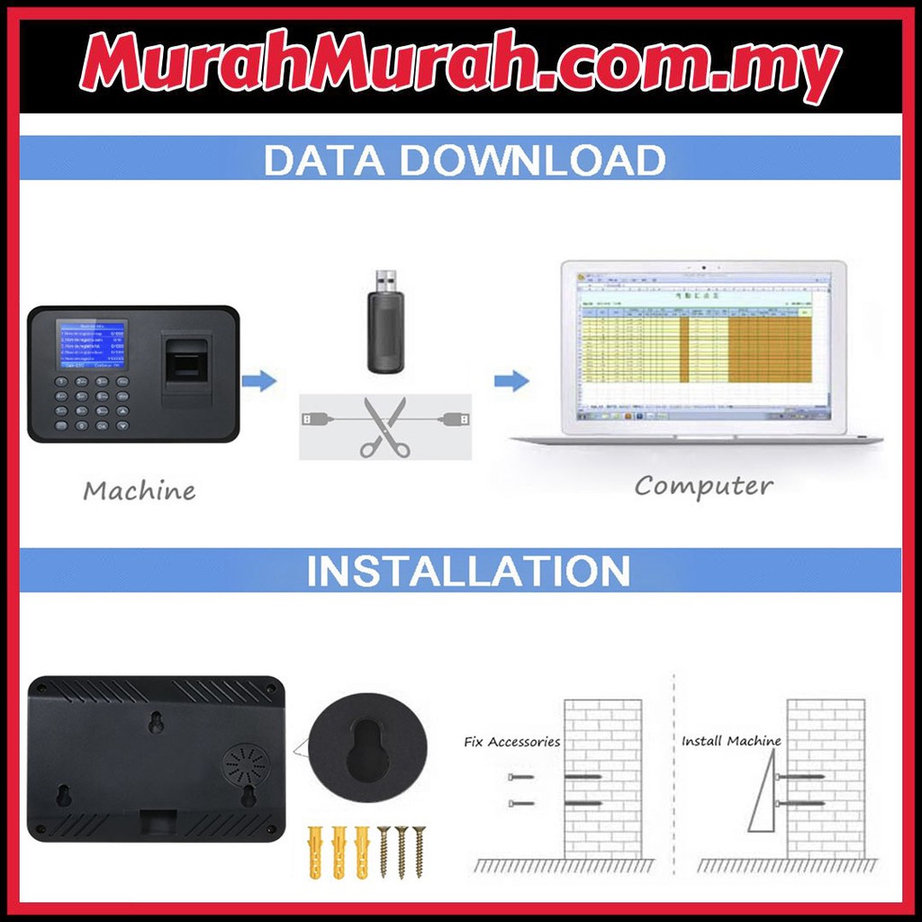 Fingerprint Time Attendance Digital Finger Print Punch Card Machine USB Port Report