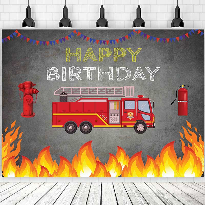 Fire Engine Birthday Backdrop Photography Baby Shower Kids Children Red Fireman Background Party Decor Custom Name Photo