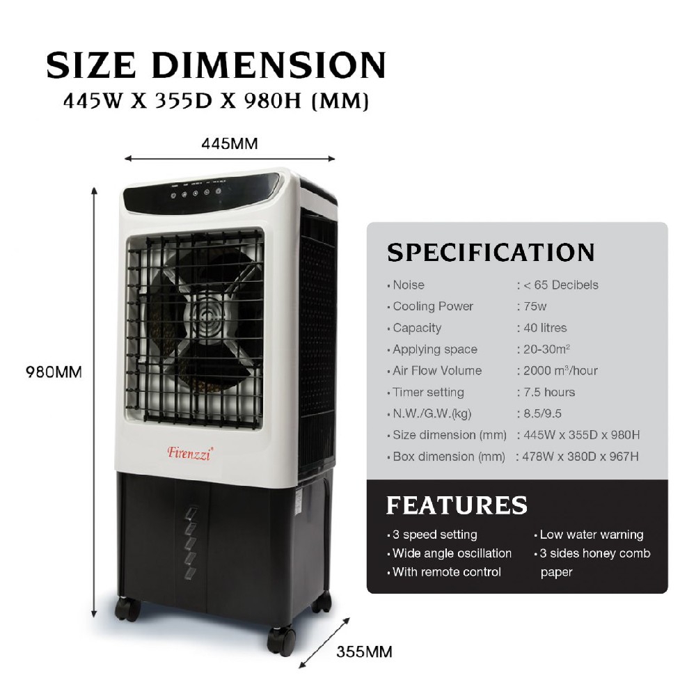 Firenzzi 40L Air Cooler with Touch Screen Panel And Remote Control FAC-1620