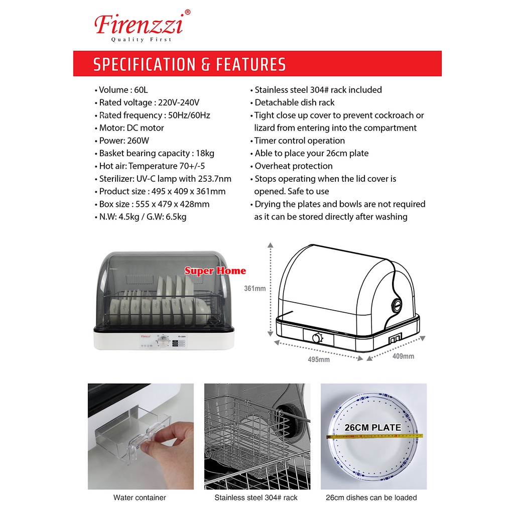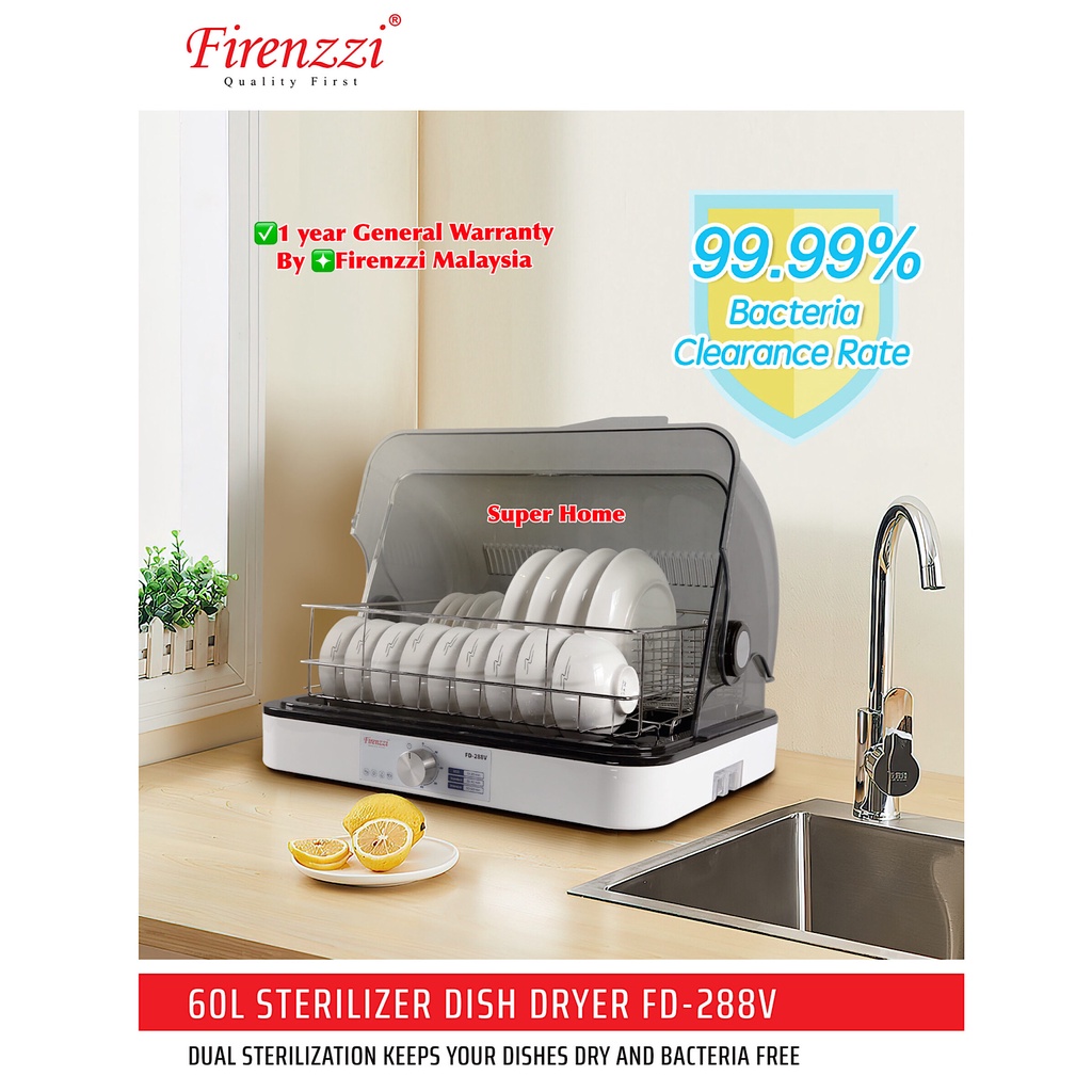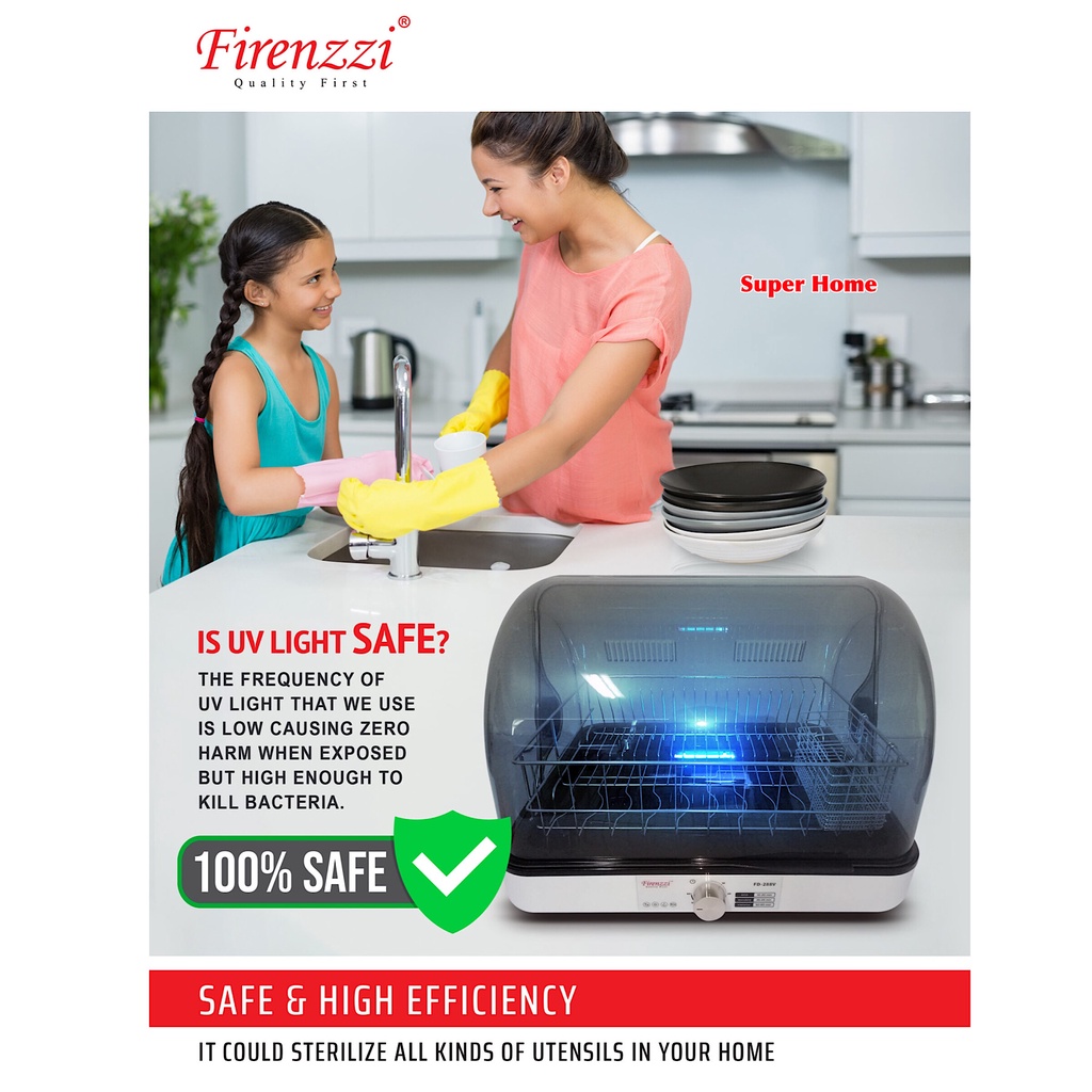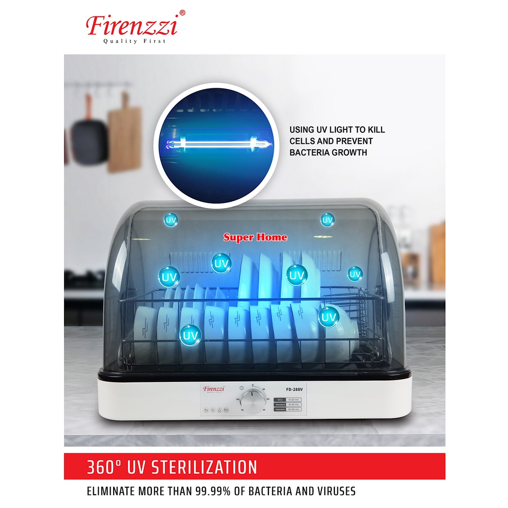 Firenzzi Sterilizer Dish Dryer FD-288V Dish Dryer with LED Light Bowl Dryer (Anti Bacteria) SUS 304 Stainless Steel Rack
