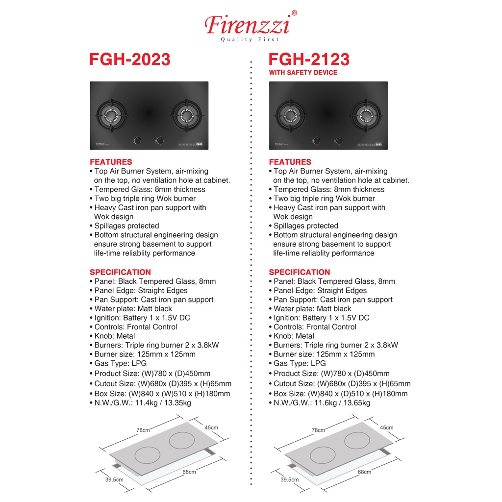 Firenzzi The Exellent Series Triple Ring Burner Gas Hob FGH-2023