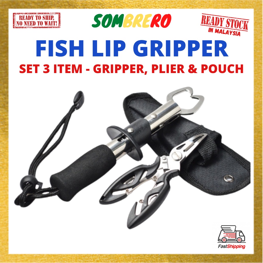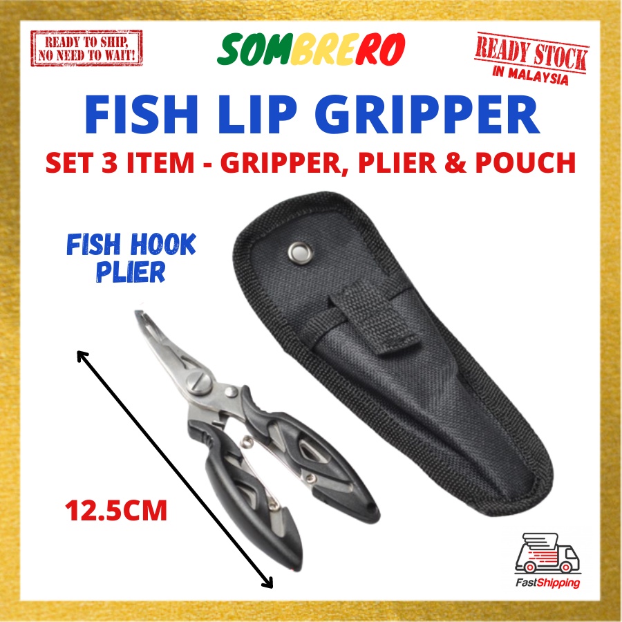 Fish Lip Grip + Fish Hook Plier + Pouch Set Fish Gripper Fishing Hook Plier Fish Holder