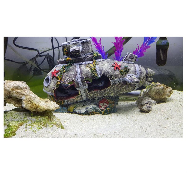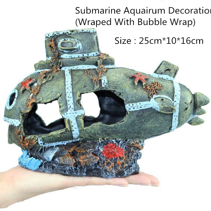 Fish Tank Aquarium Sunk Submarine Decoration Landscaping Aquarium Ornament Decoration (25*10*16cm)