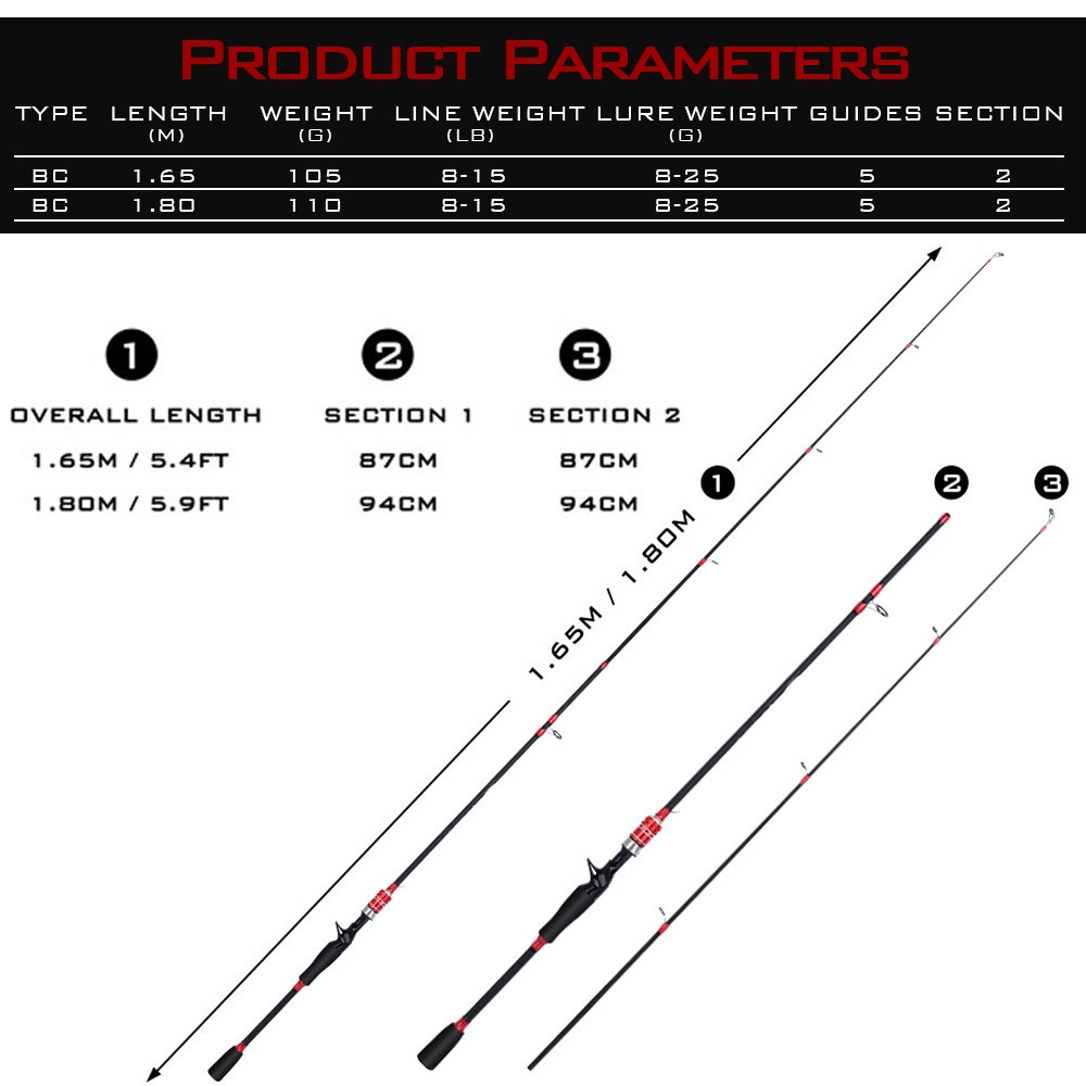 Fishing Rod and Reel 1.65m/1.8m Casting Rod Ultralight Baitcasting Rod and 7.2:1 Gear Ratio Baitcasting Reel Set