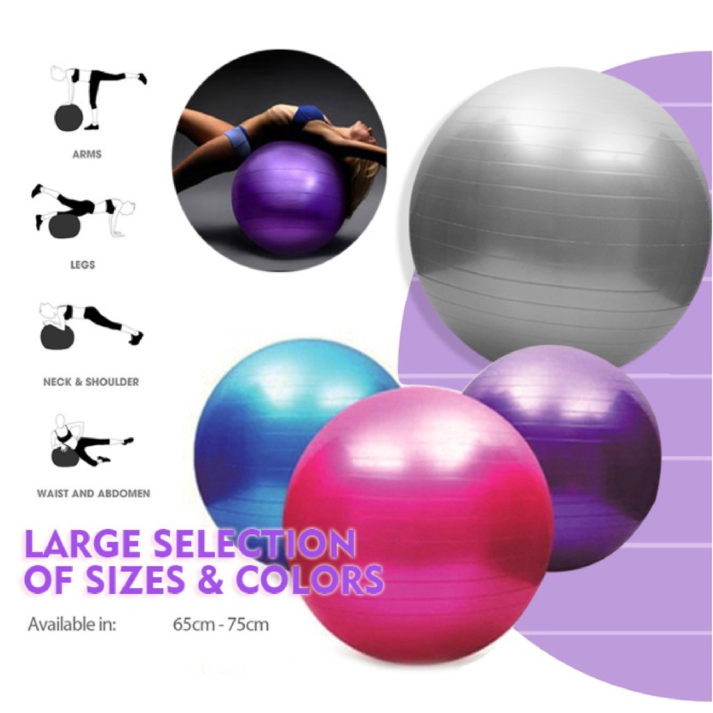 Fitness Sports Yoga Ball (FREE PUMP) Pilates Balance Fitball Exercise Equipment Pilates Pregnant Massage Ball (55-75cm)