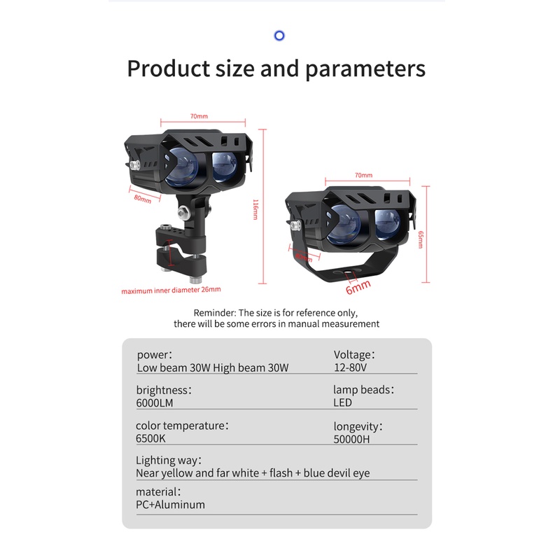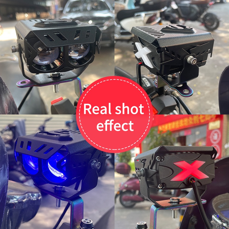 Five-mode Car And Motorcycle LED Light Mini Driving Light Spot Light LED daytime running lights + flashing+White Yellow High and low light Motorcycle Fog Lamp