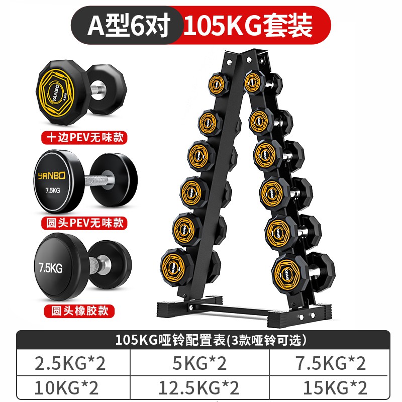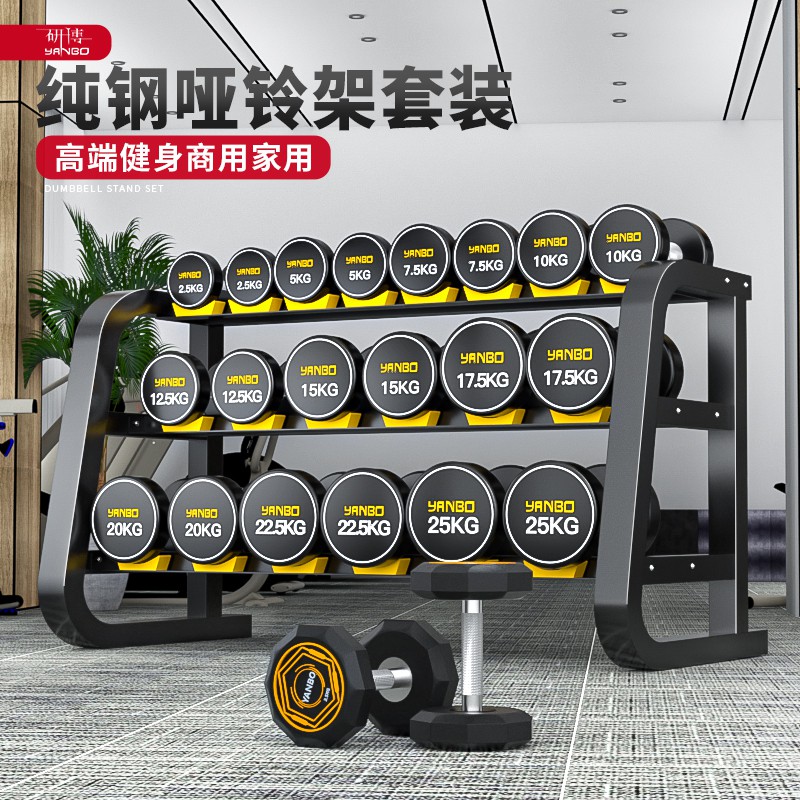 Fixed Dumbbell Rack Men's Fitness Household Full Set Combination Commercial Rubber Coated Steel Dumbbell 10kg Profession