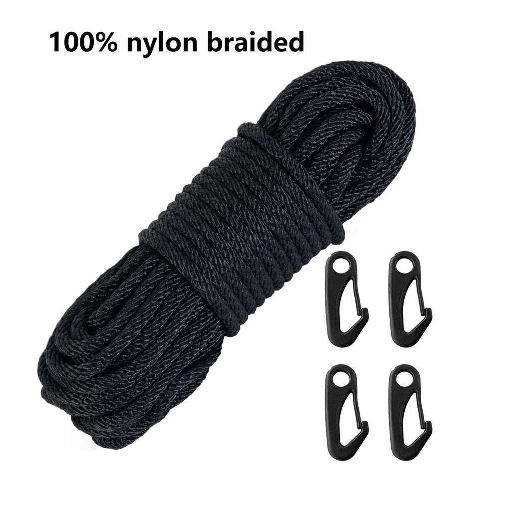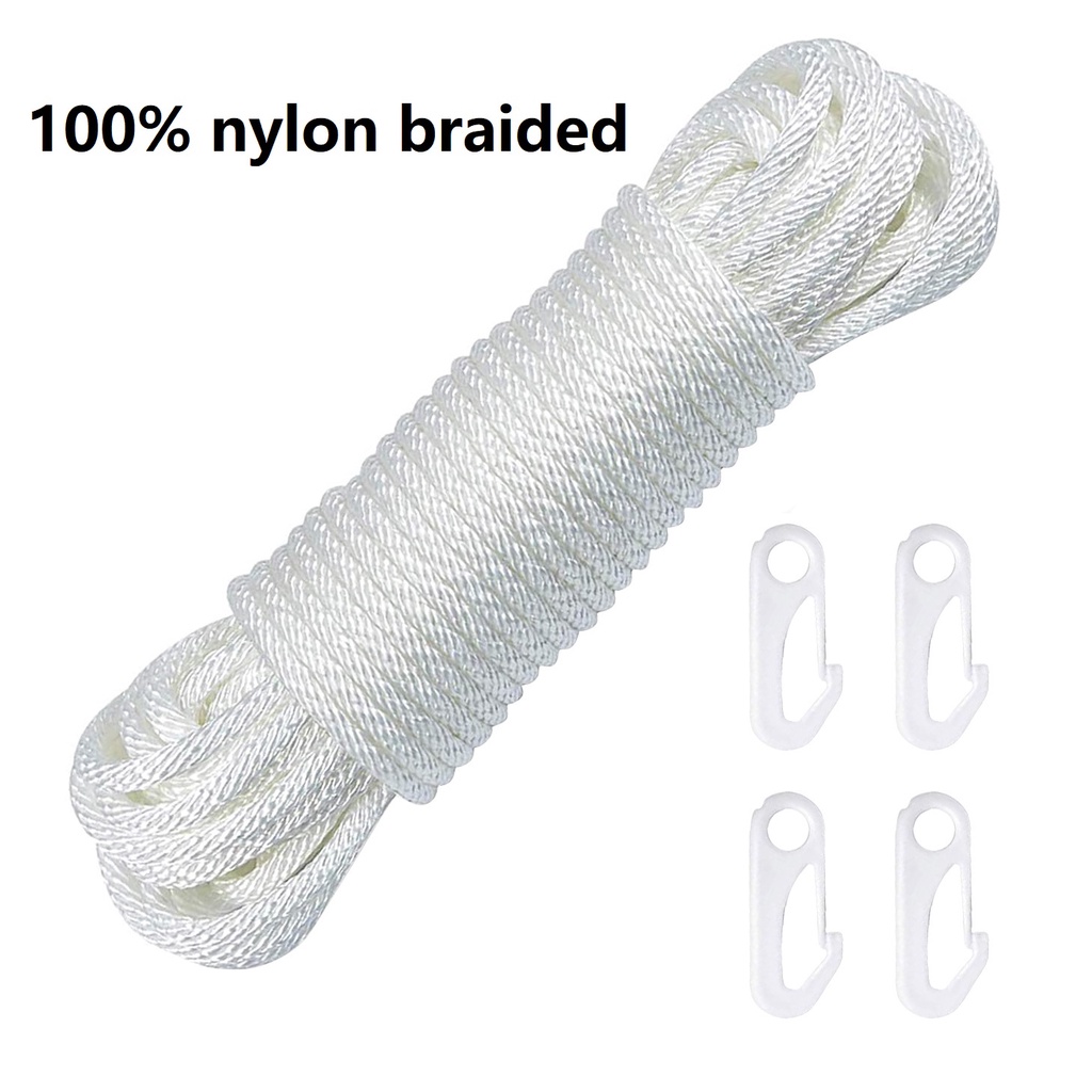 Flag Pole Rope Kit 50/100 Feet x 1/4" Diameter Flag Pole Halyard Nylon Rope with 4 Pieces Flag Pole Hook Clips - Outdoor Flagpole Accessories, Clothesline, Camping