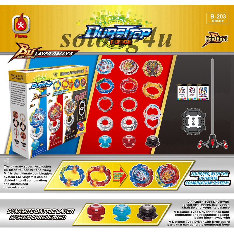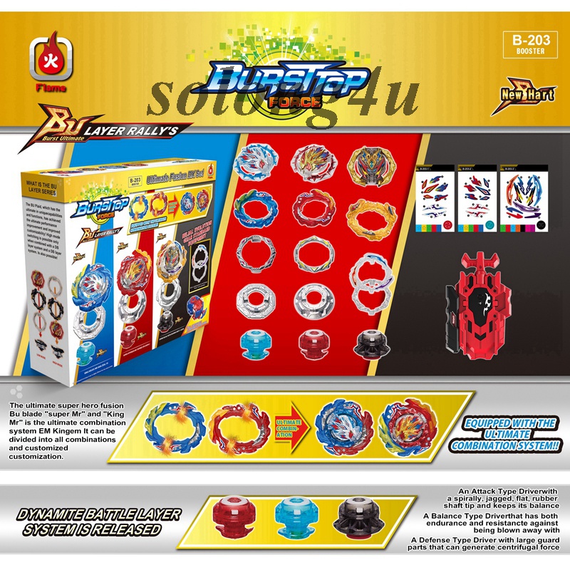 Flame B-203 Spinning Tops Burst BU Helios Hyperion Ultimate Fusion DX Set