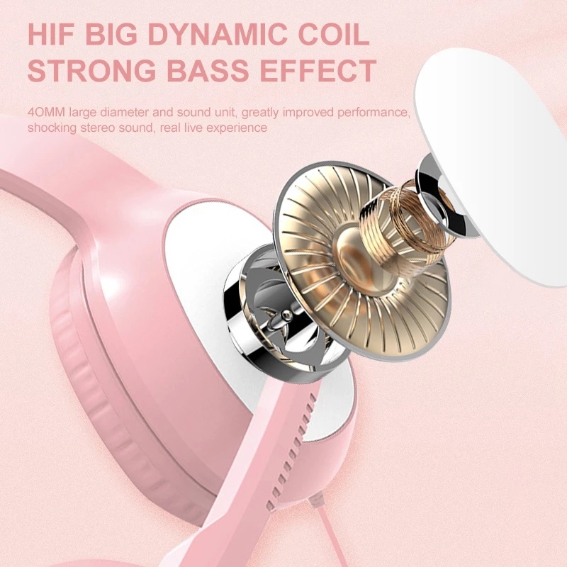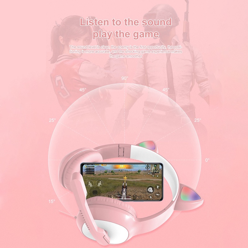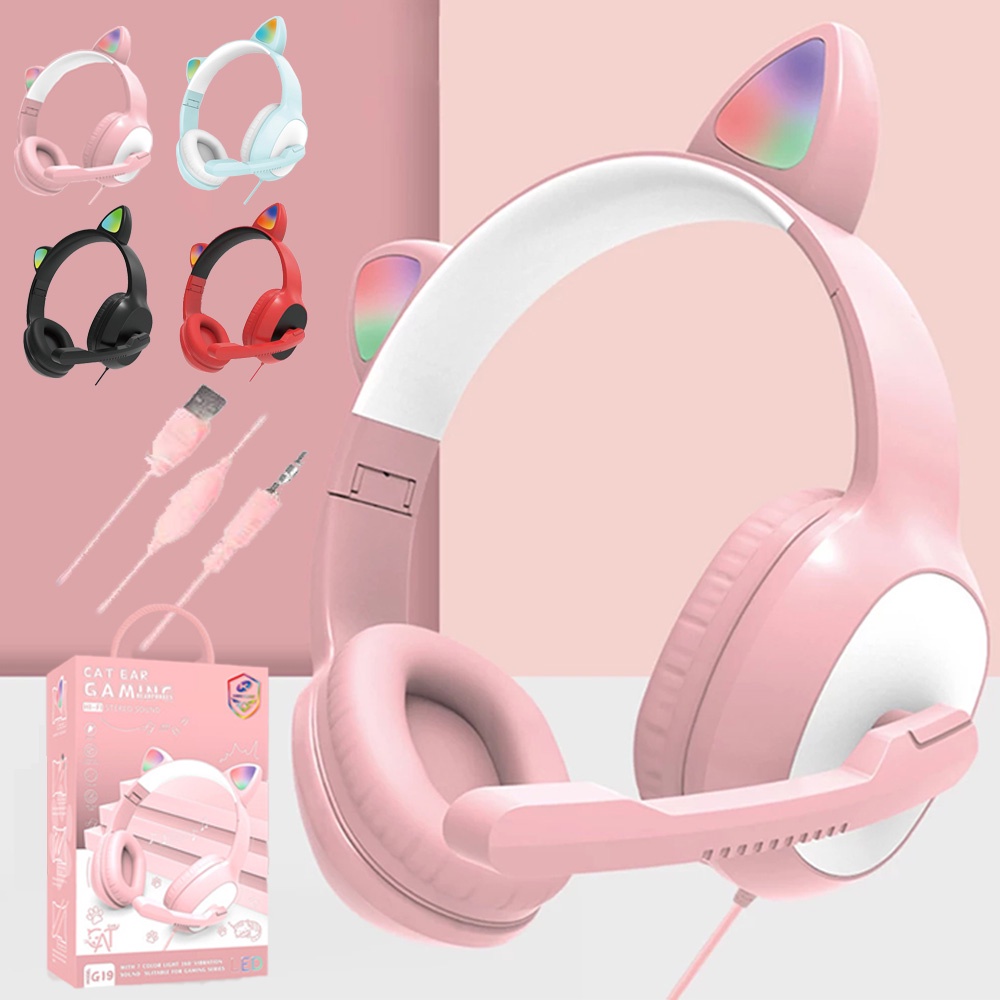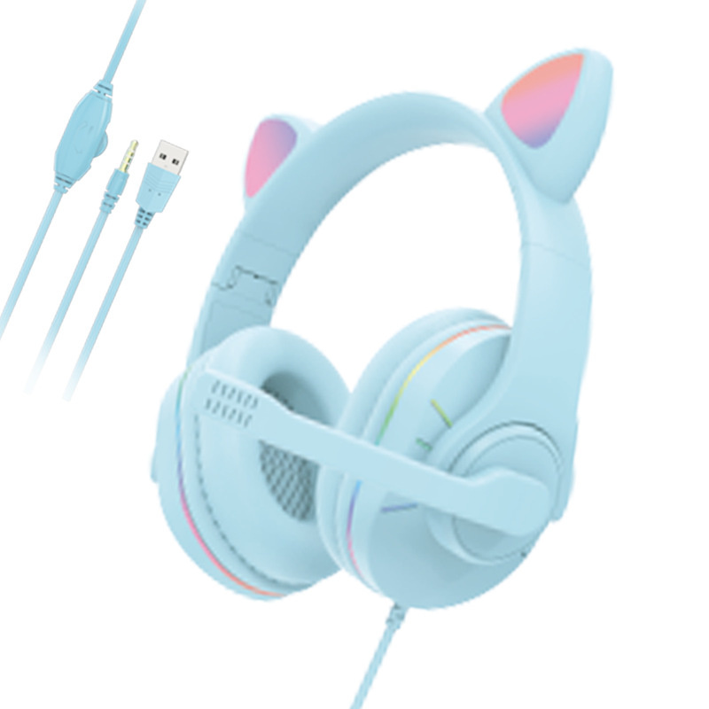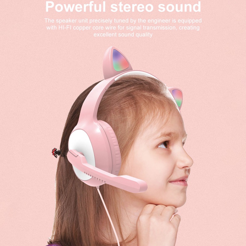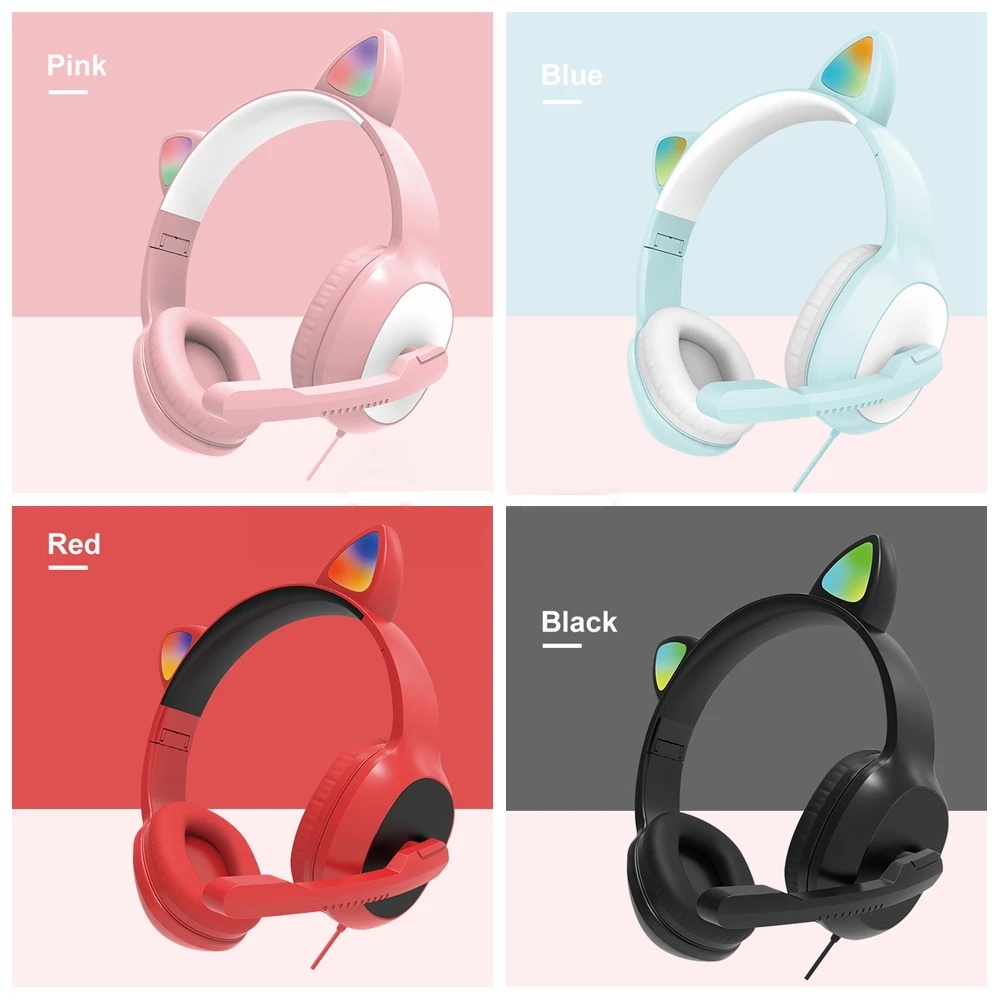 Flash Light Cute Cat Ears Wired Headphone with Mic Can Control LED Kid Girl Stereo Music Helmet Phone Headset Gift