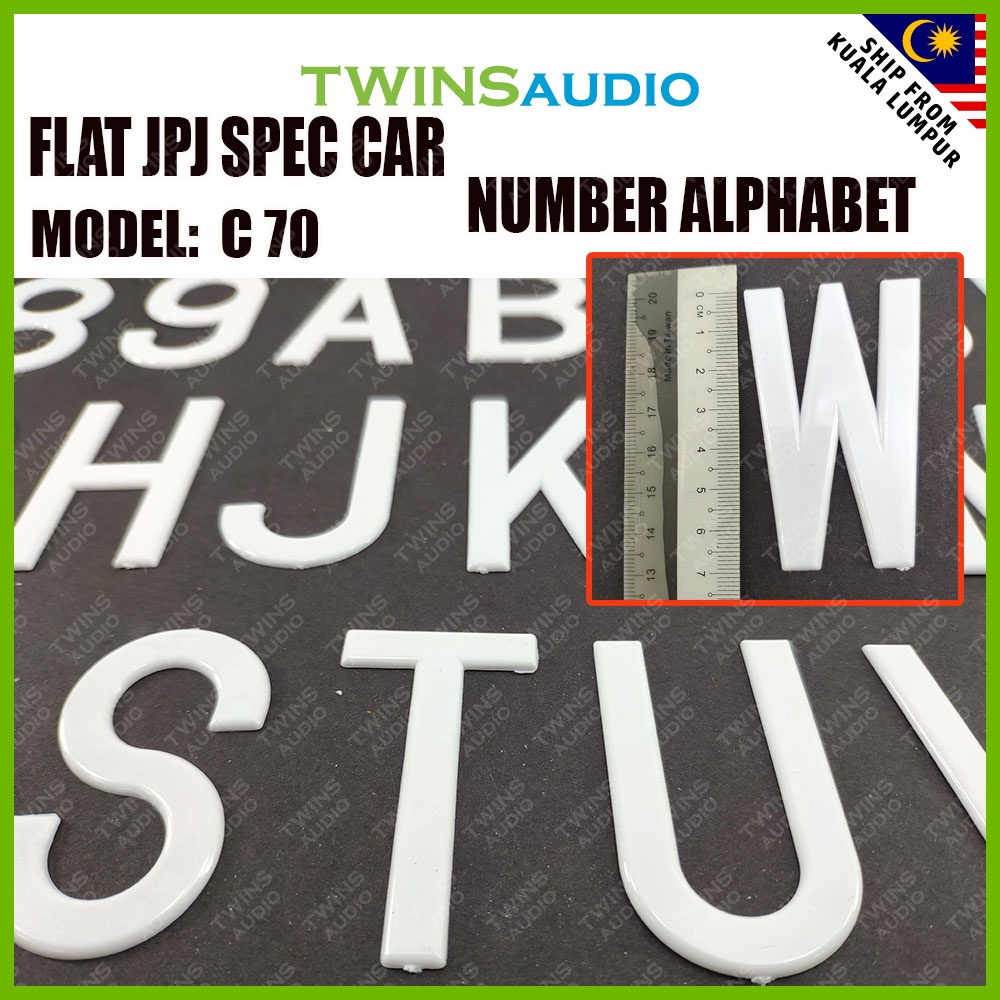 Flat JPJ Spec Car Number Alphabet C70 (1 PC) / Nombor Plate Kereta Standard Font Design JPJ Approve