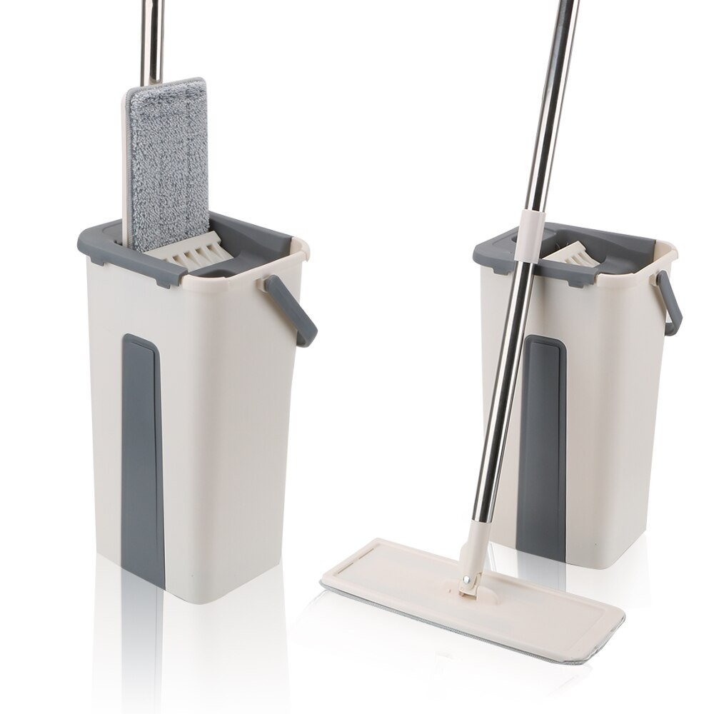 Flat Squeeze Magic Mop Set Wooden Floor Flat Lazy Mop Hand Free Washing Fiber Cleaning Cloth Automatic Spin Mop Lantai