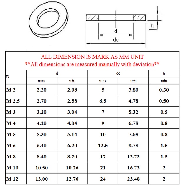 Flat Washer 304 Stainless Steel Washer M2 M2.5 M3 M4 M5 M6 M8 M10 flatwasher A2 Grade