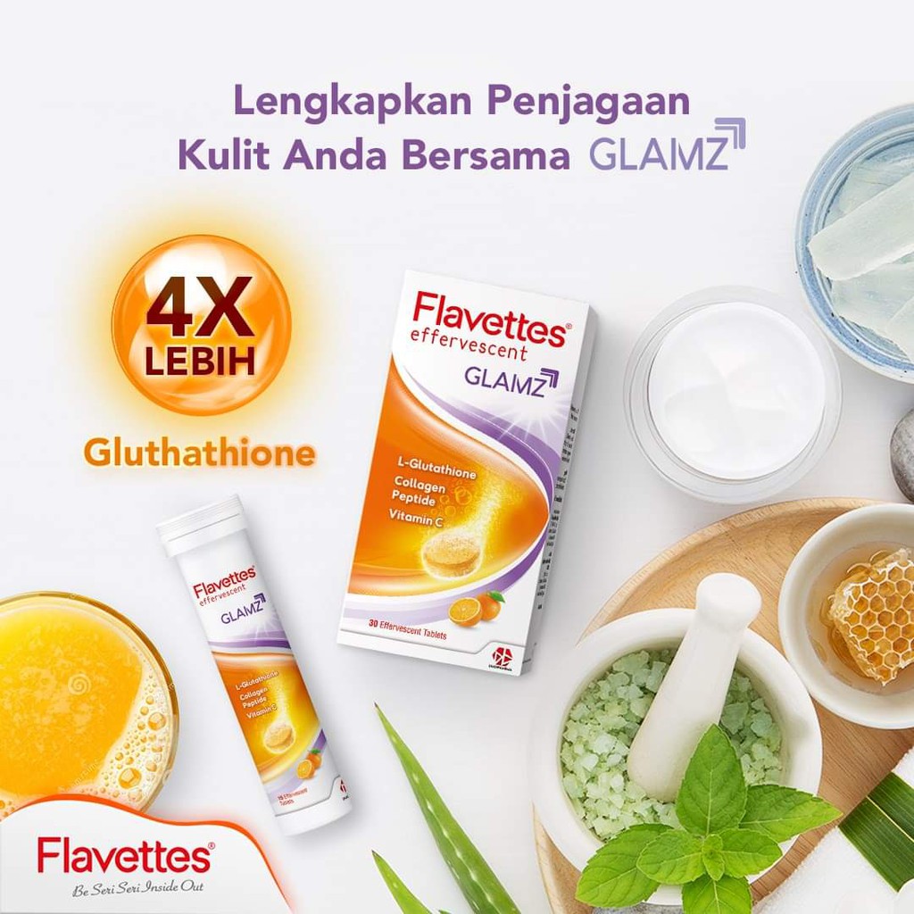 Flavettes Glamz Orange Flavour Effervescent Tablet 30's with Collagen & Glutathione (EXP: 1/2027)