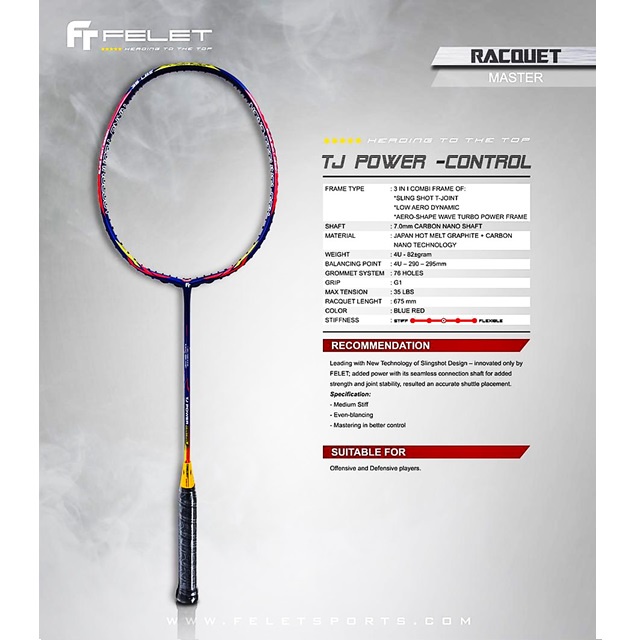 Fleet TJ Power Control No String Original Badminton Racket- Blue Red(1pcs)