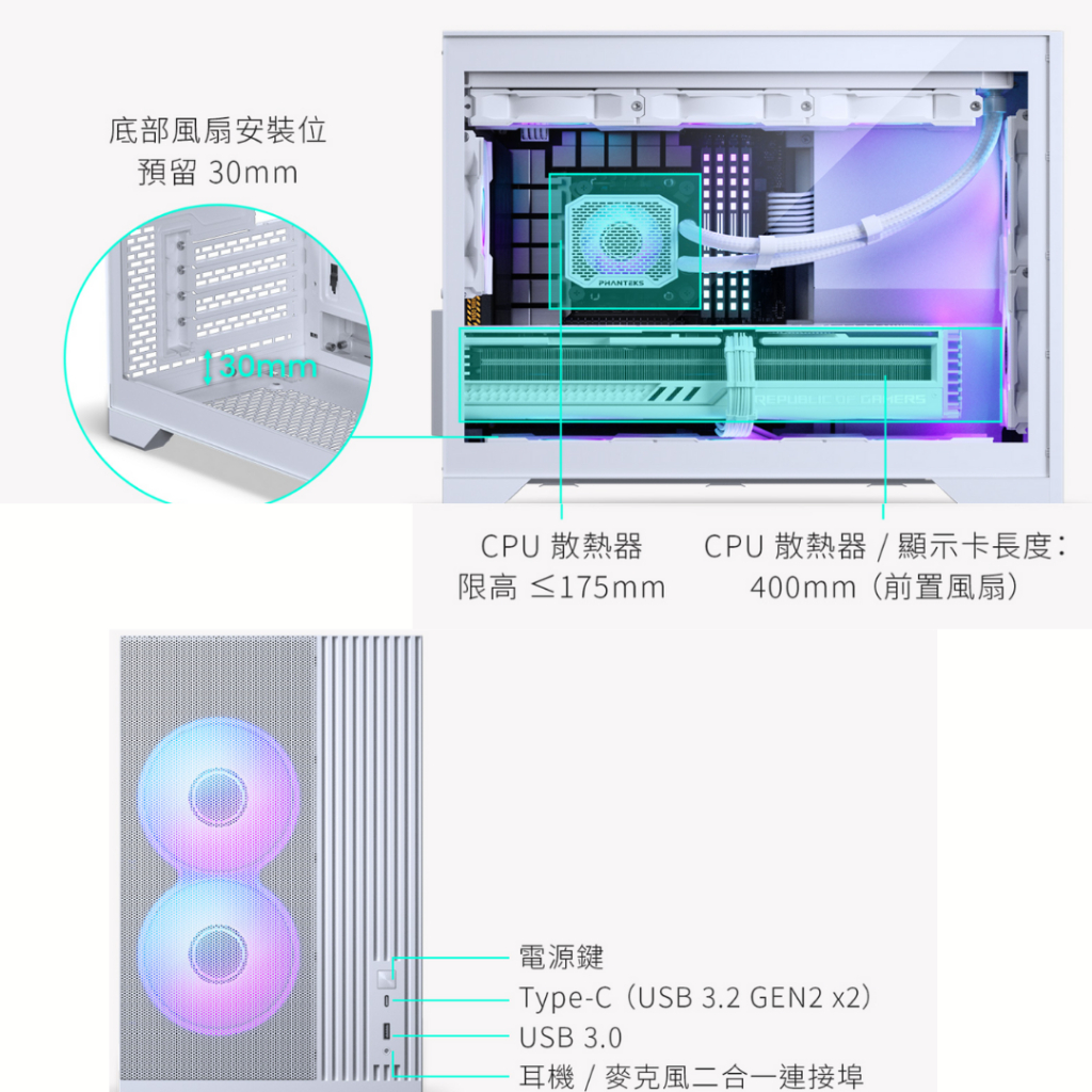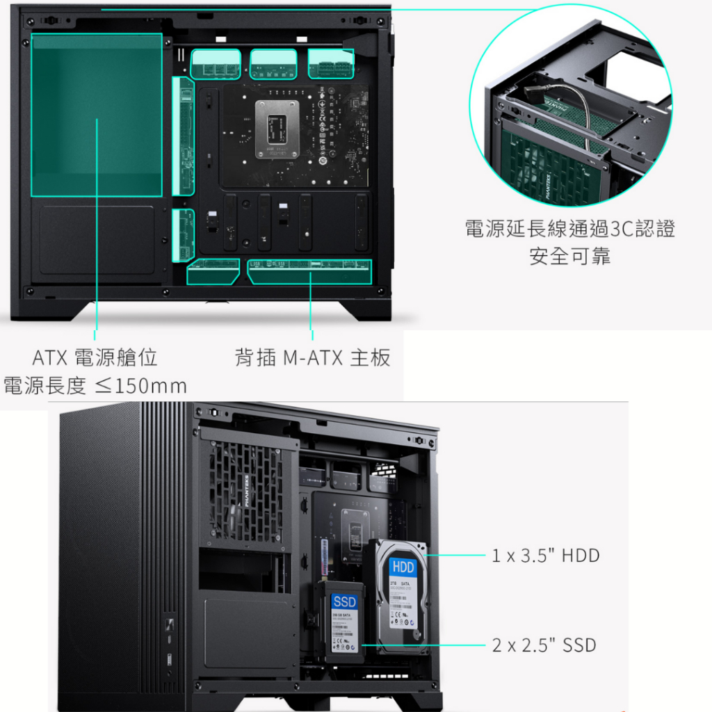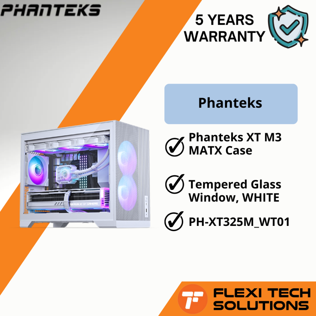 Flexi Tech Phanteks XT M3 MATX Case, Tempered Glass Window, Black / White