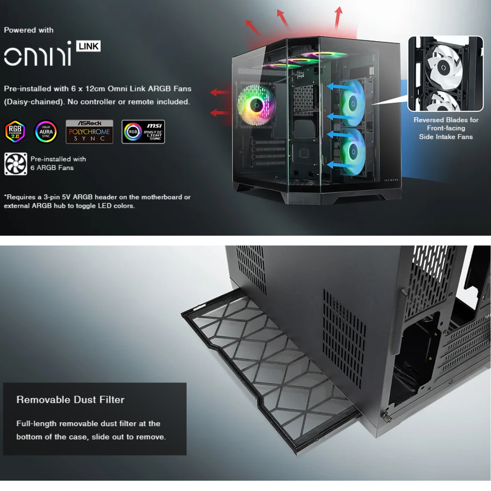 Flexi Tech Tecware VX Trinity M TG MATX Case w/6 ARGB Fans - Black & White