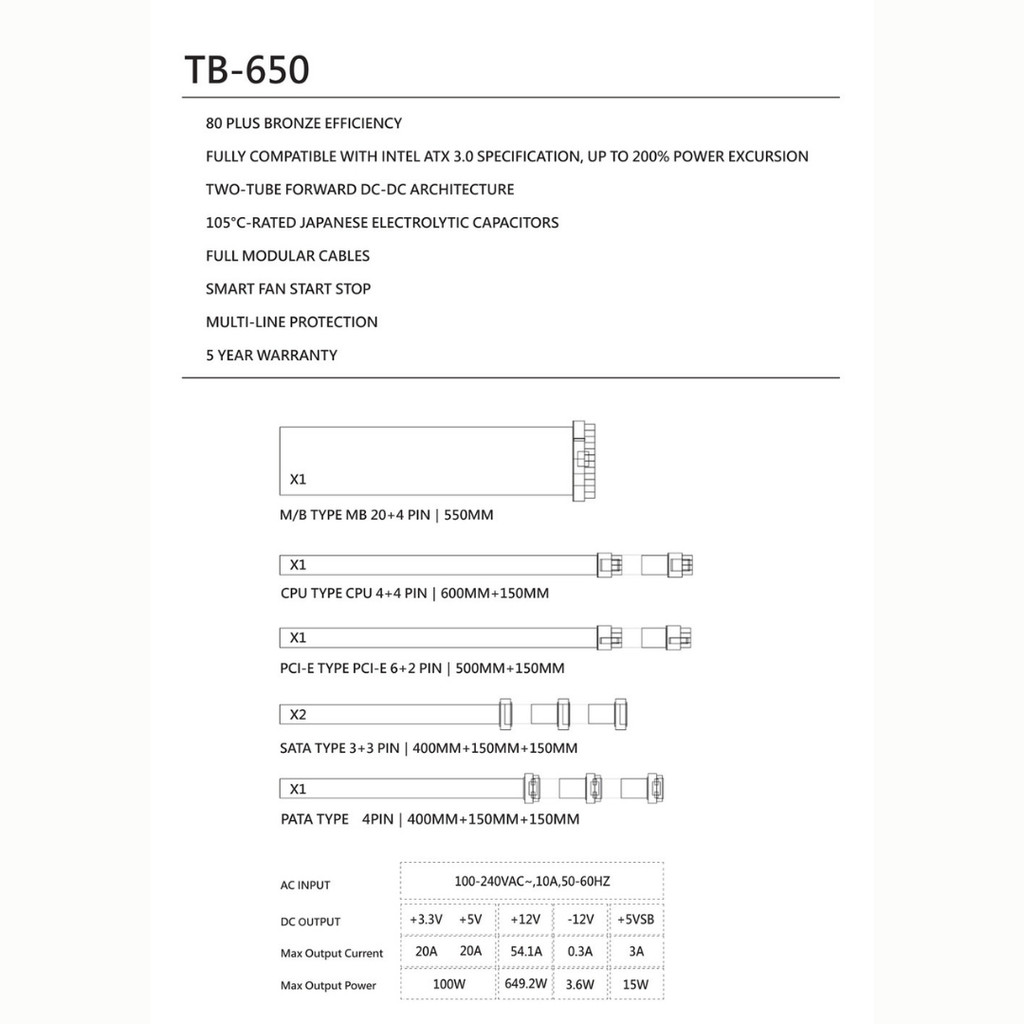 Flexi tech THERMALRIGHT 650W / 750W 80+ BRONZE MODULAR PSU TB650/TB750 - BLACK