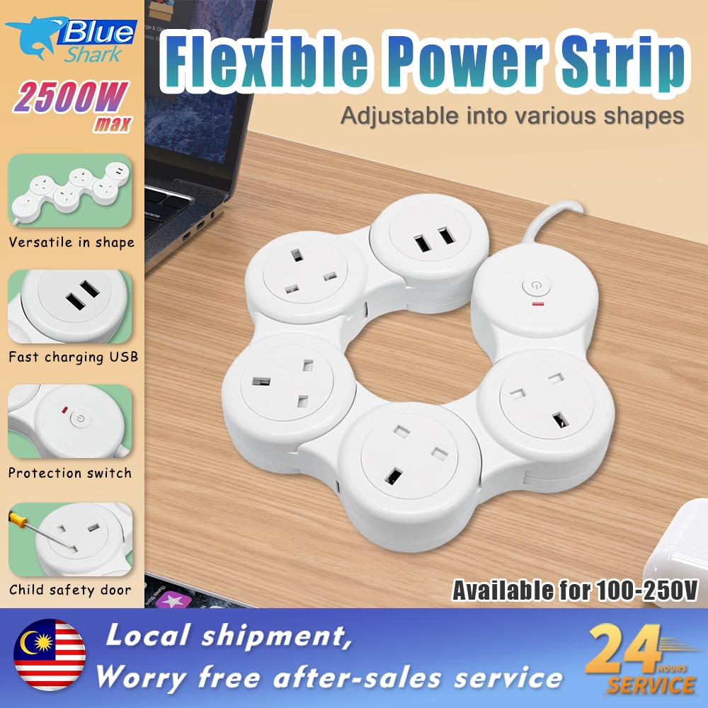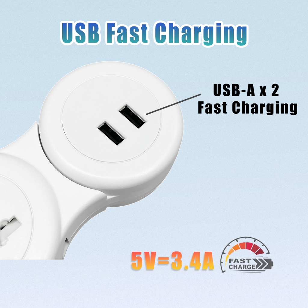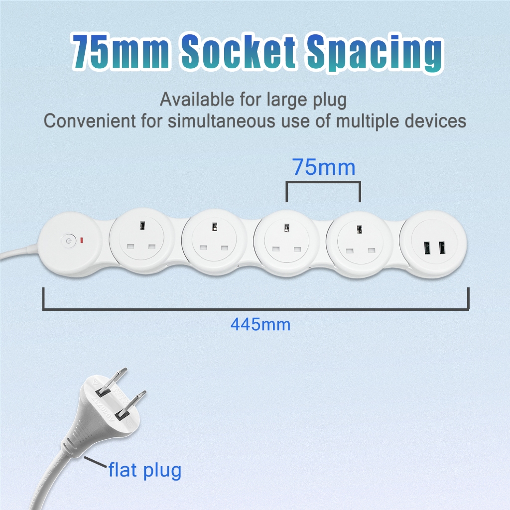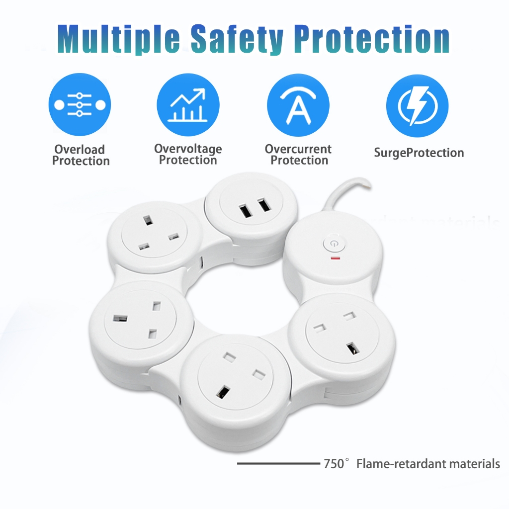 Flexible Power Strip With USB Fast Charger 4 Outlet 1.8 Meter Extension Wire Heavy Duty UK Socket Surge Protector Switch